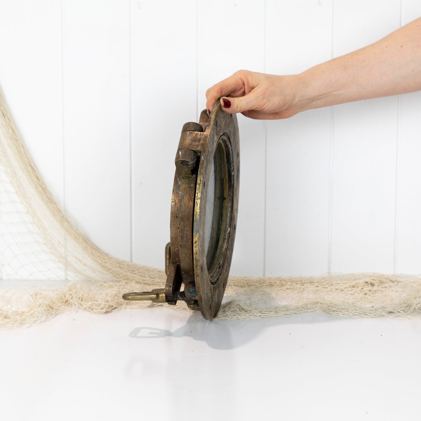 Rustic and well used, the brass has developed a dark patina from its time on the sea.
