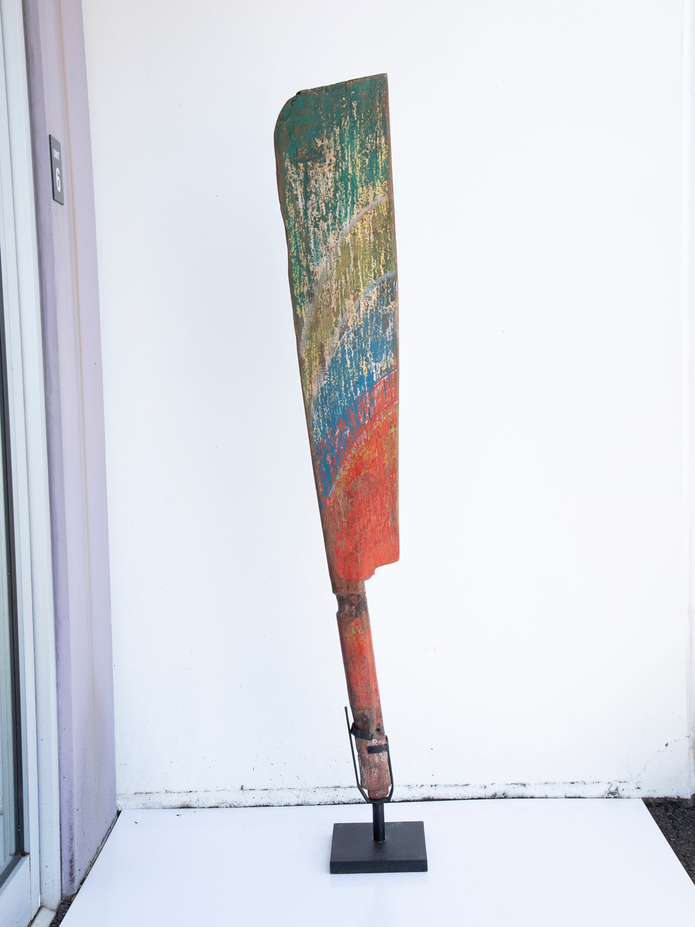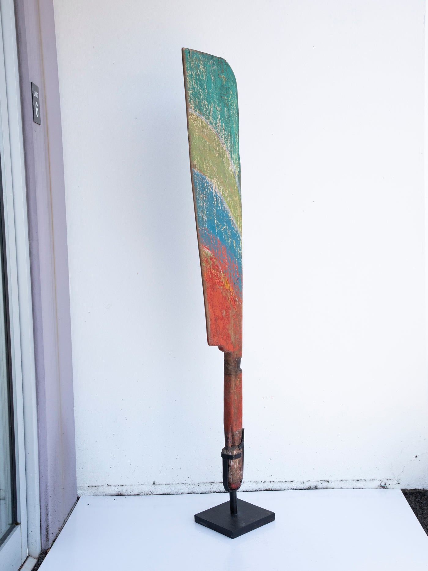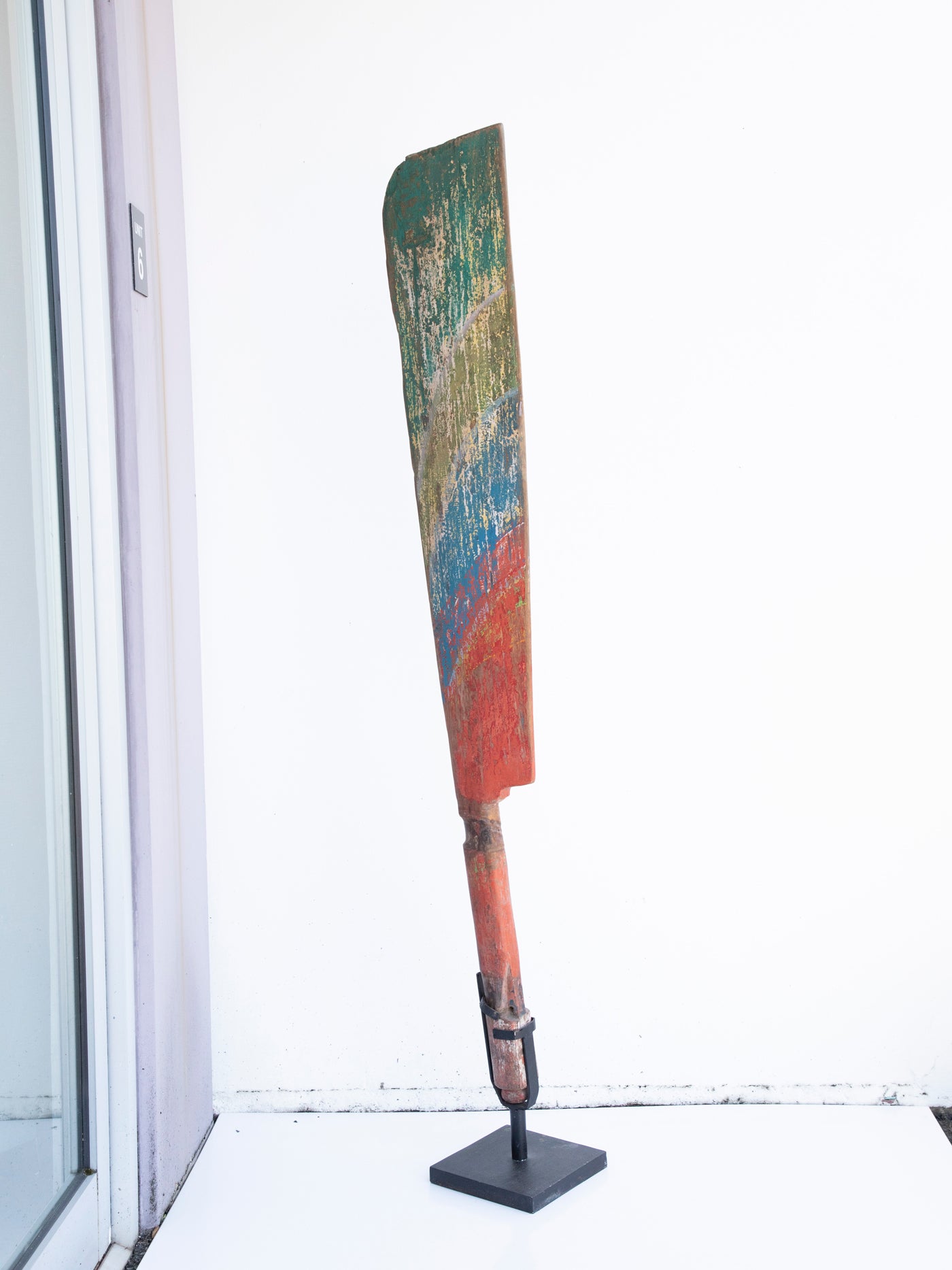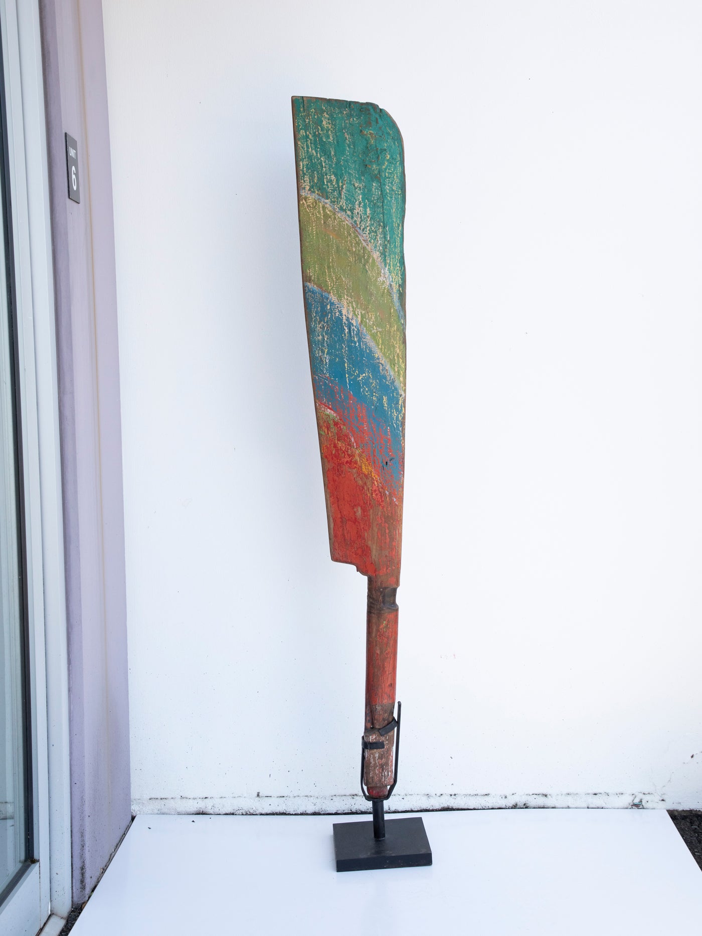 Each rudder is unique with their colour combination and lovely worn patina. A stand has been custom made for each piece.