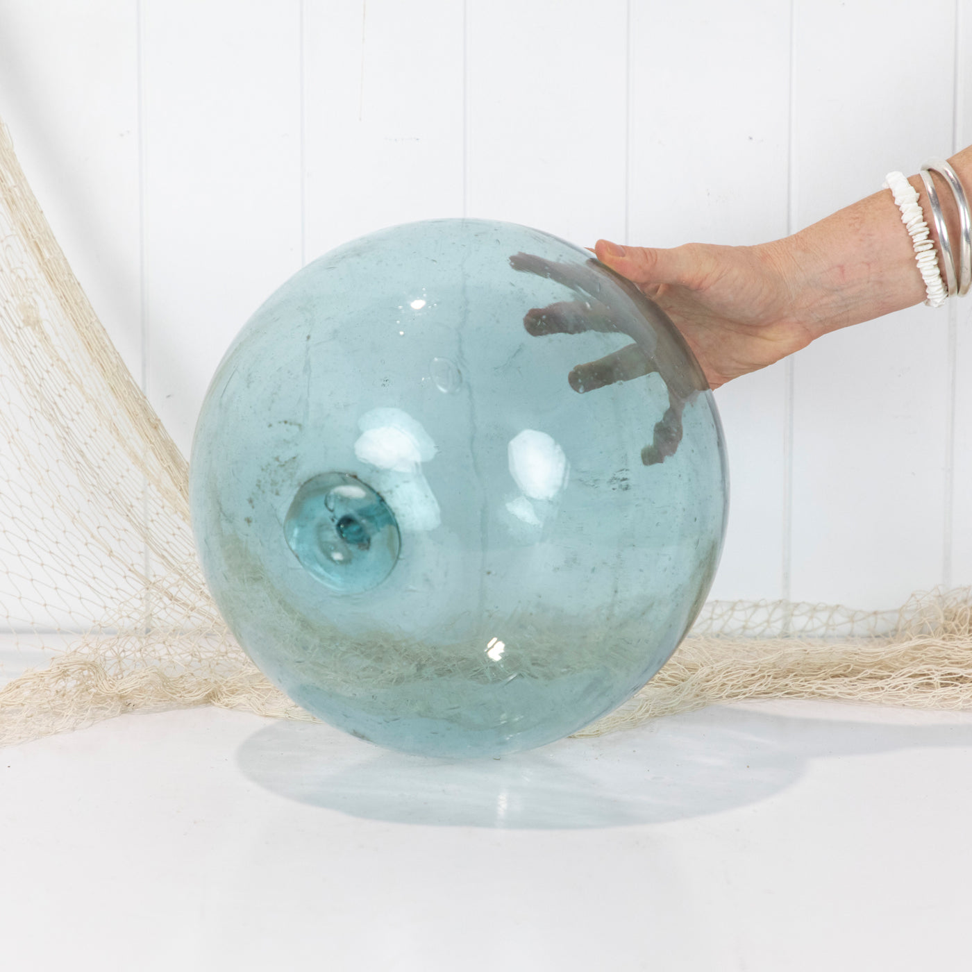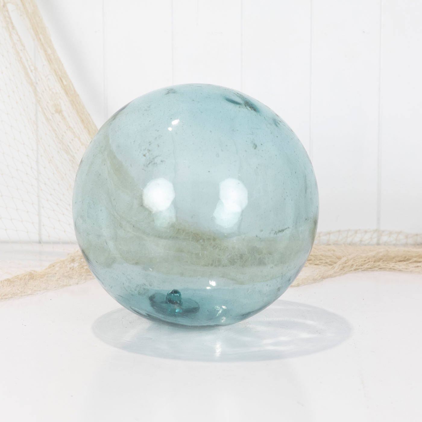 This beautiful old 12" glass float has long ago lost its net.