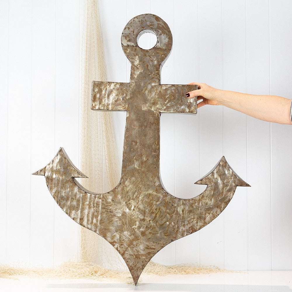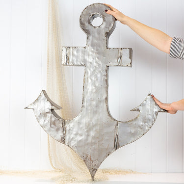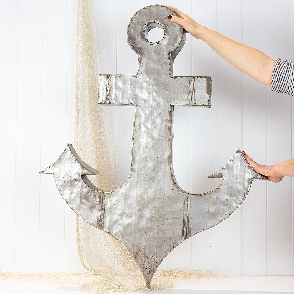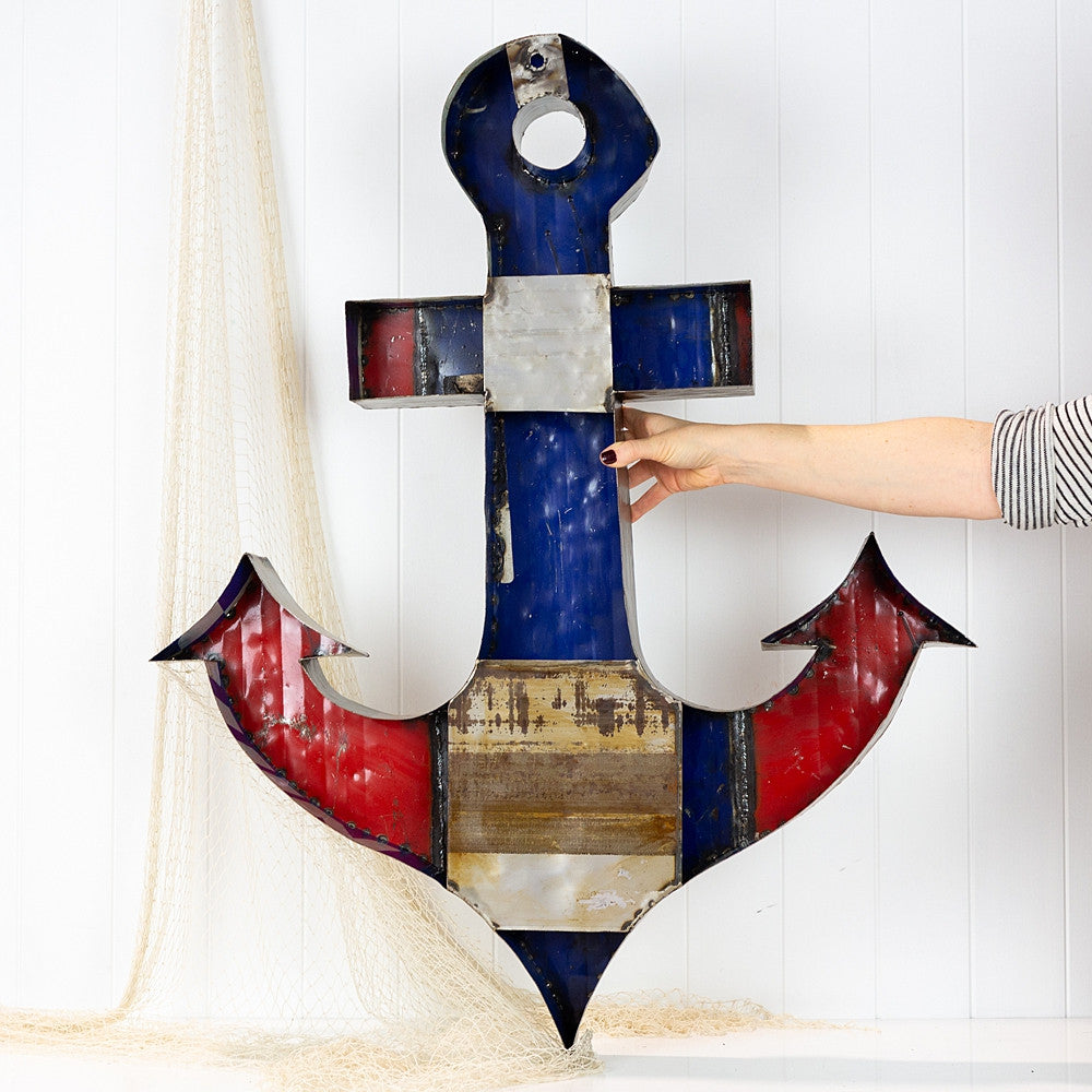 These large metal anchor has been custom made, cleverly crafted by re purposing old metal drums.