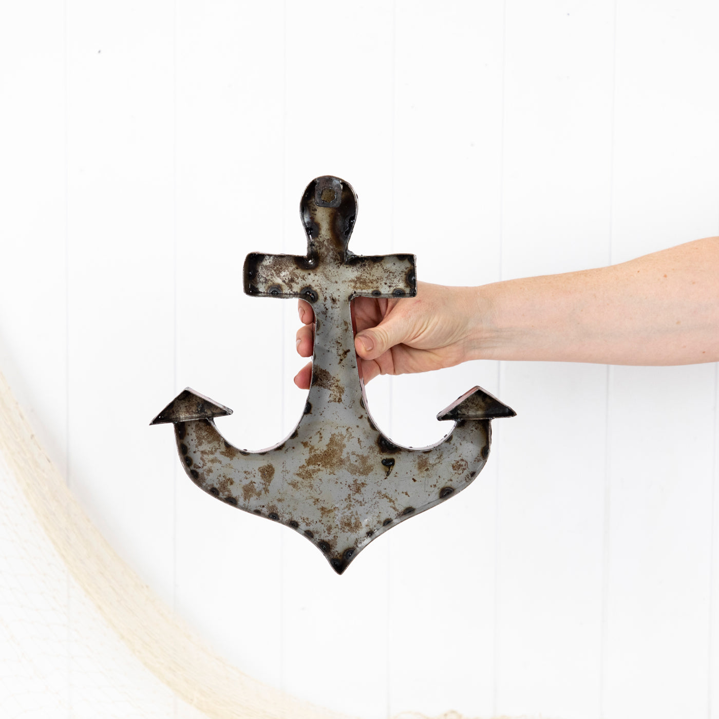 These metal anchors are custom made & have been cleverly crafted from old metal drums. Don't they look great?