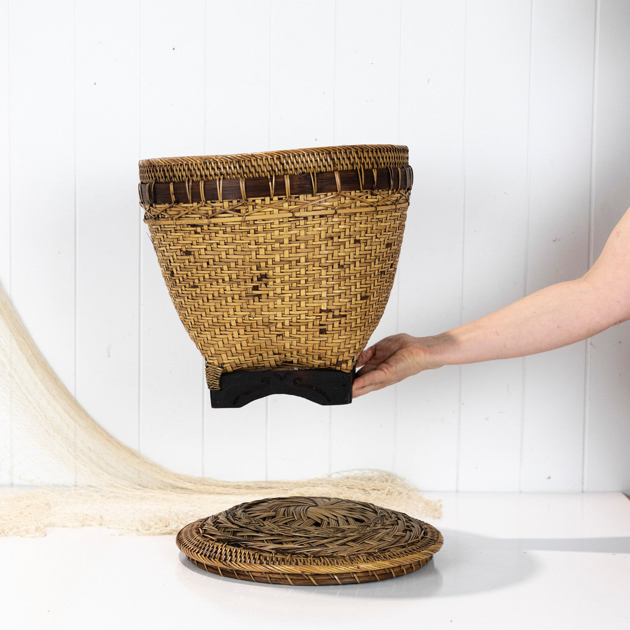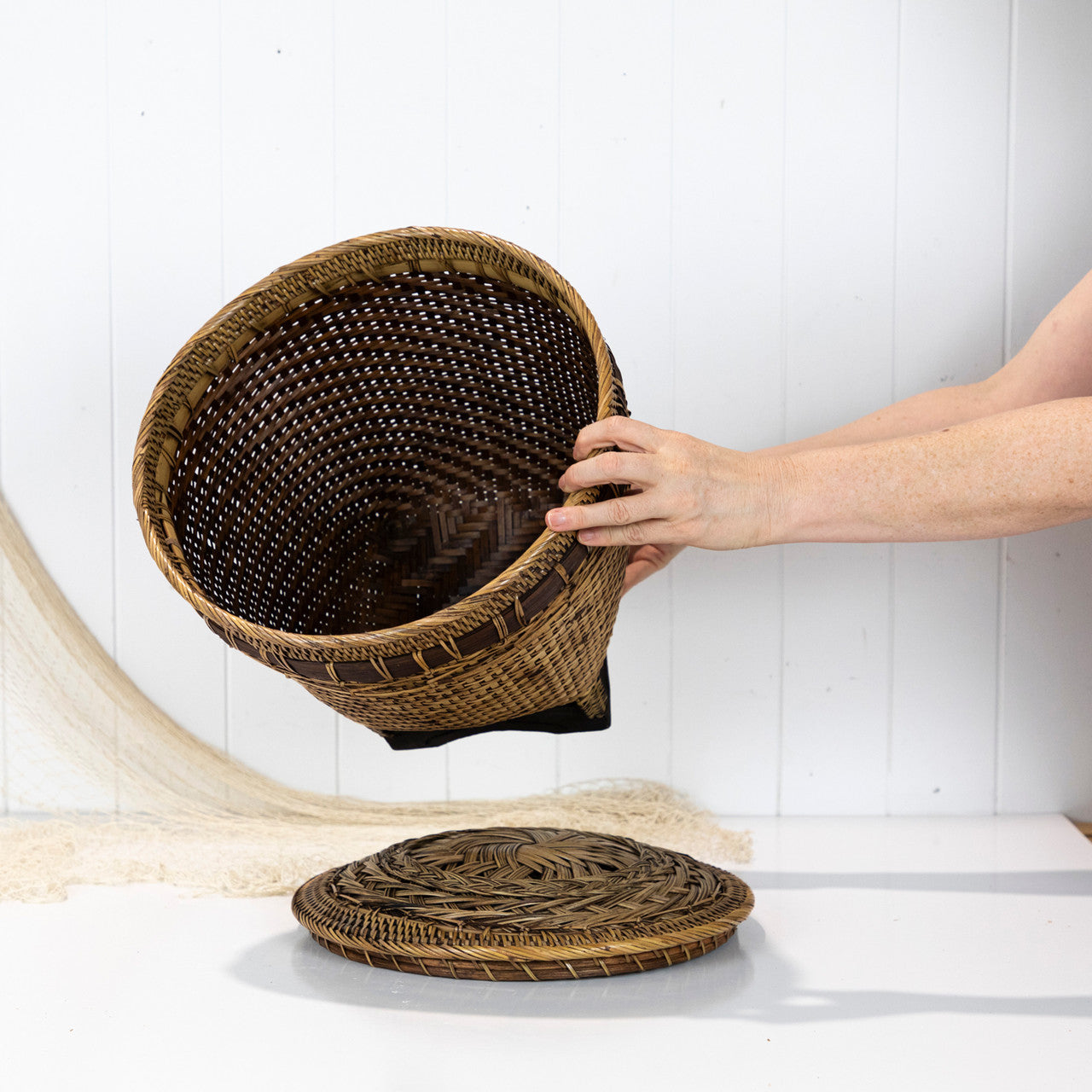 These high-quality rattan baskets with beautiful details have been handmade in Indonesia.