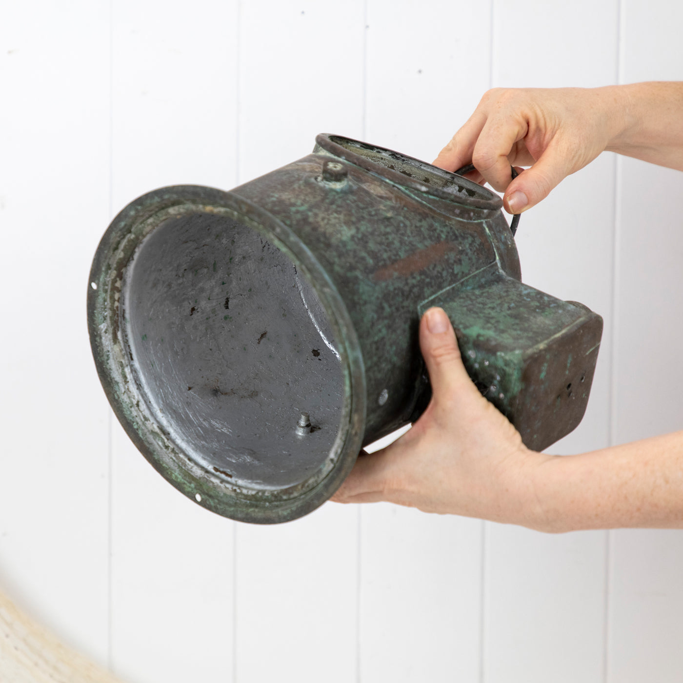 The brass has aged to a perfect green patina from years of exposure to the elements.