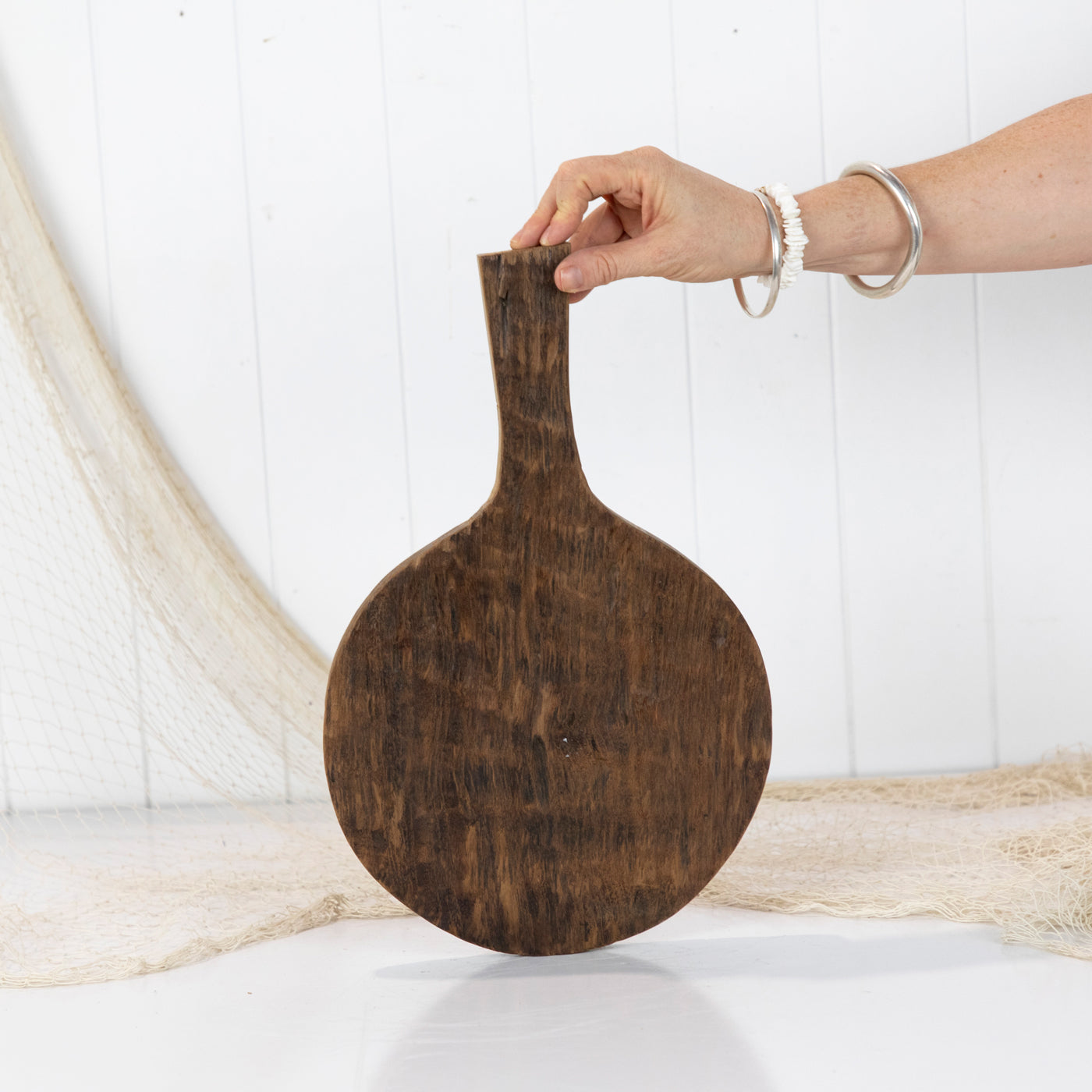 This gorgeous bread board has been made using reclaimed timbers.