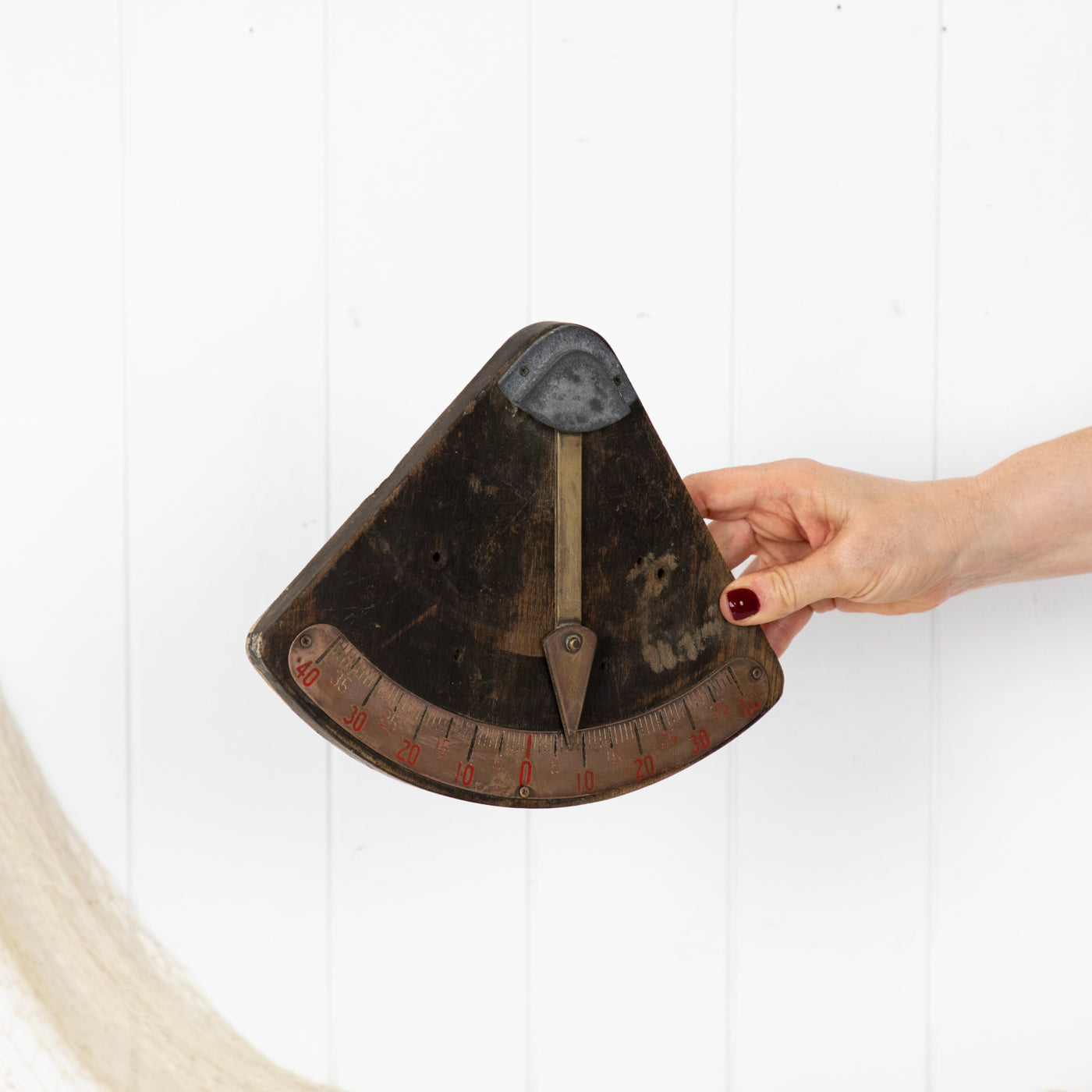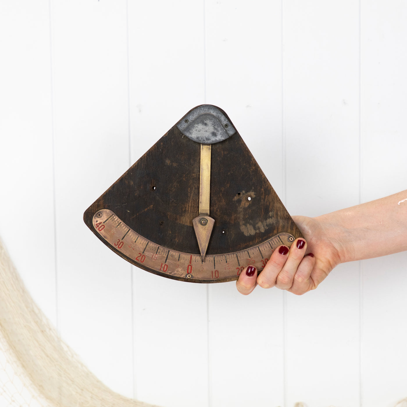 This lovely old timber and brass clinometer has certainly seen some time at sea!