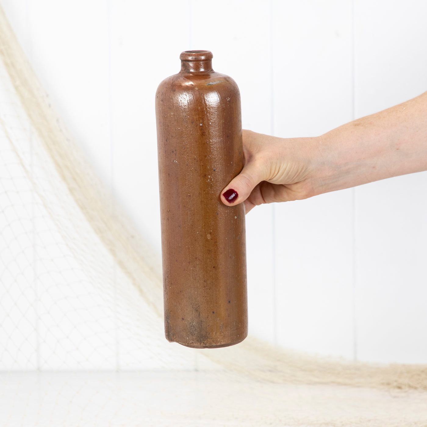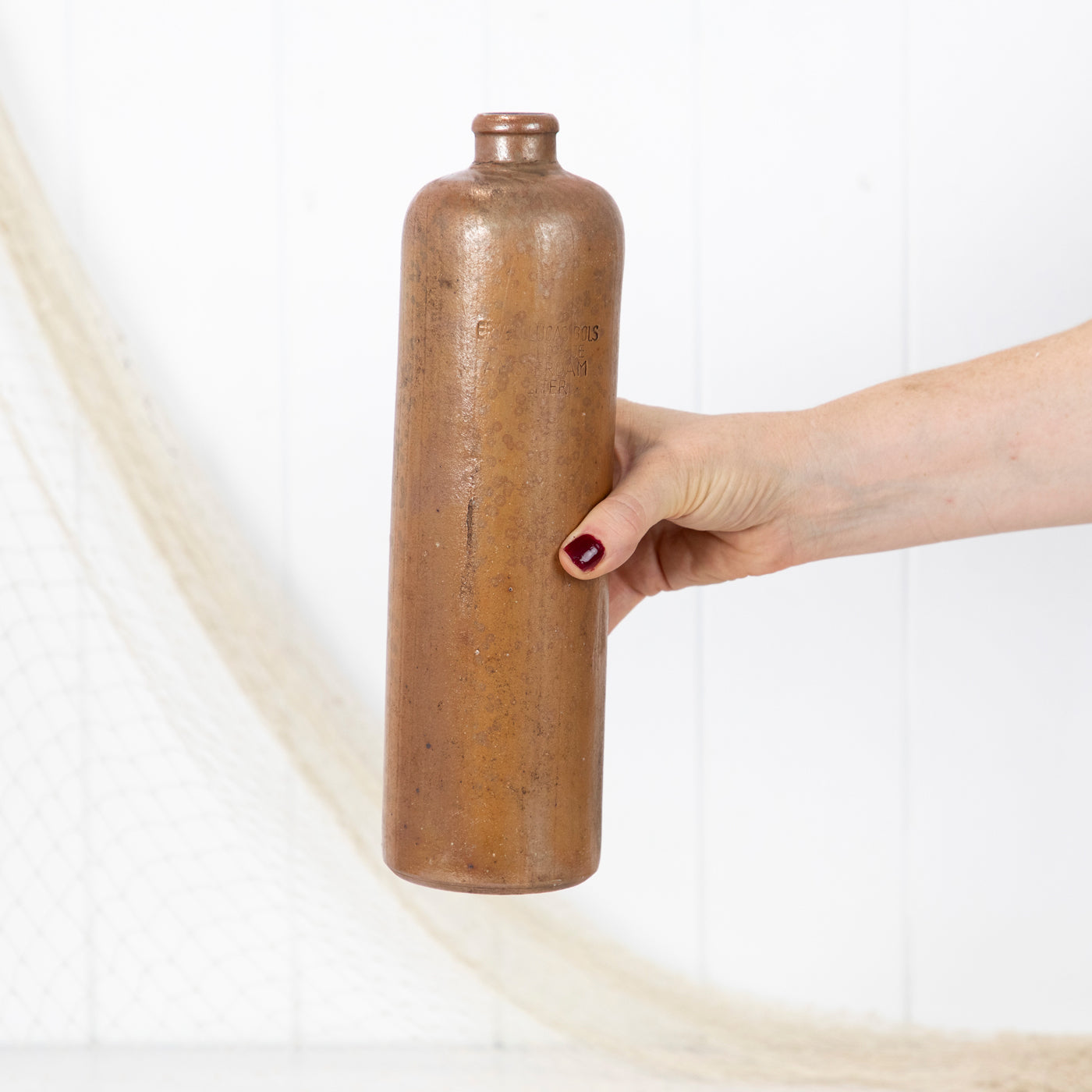 This tall one litre stoneware bottle originated from Amsterdam.