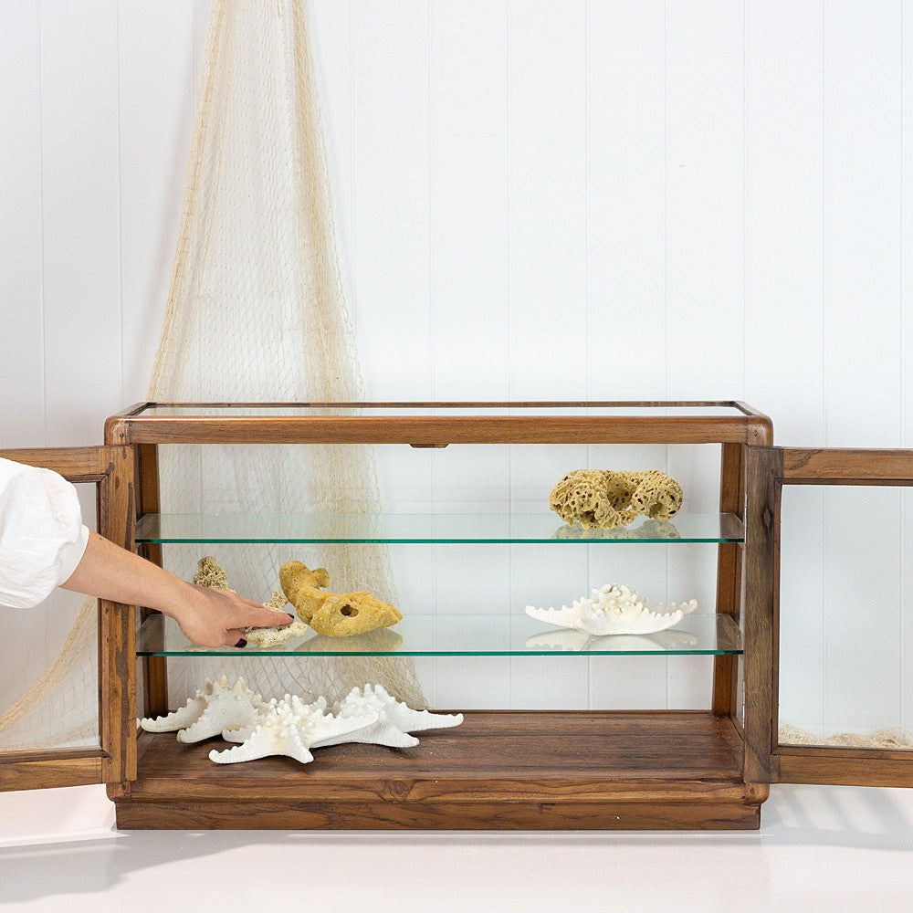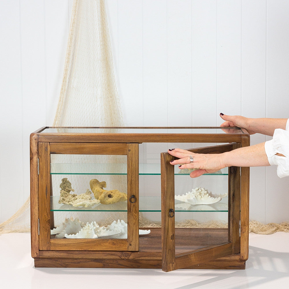 These beautiful timber and glass shop cabinet were custom made exclusively for us.