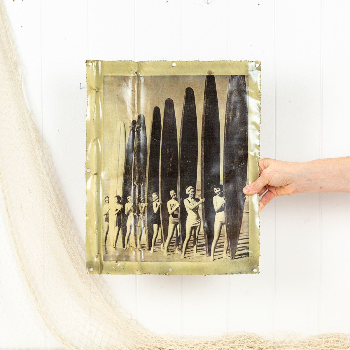 This wonderful retro wall piece has been created by printing an image onto metal.