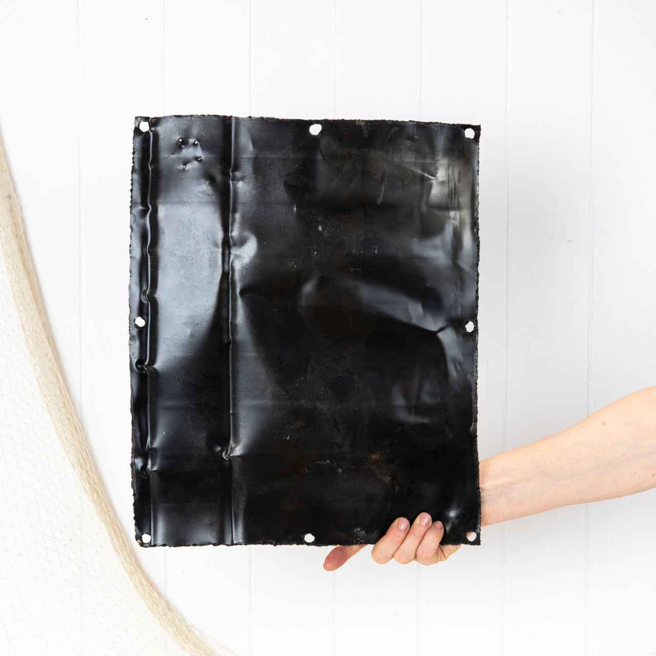 The metal is from an old oil drum which has been cut and rolled flat.