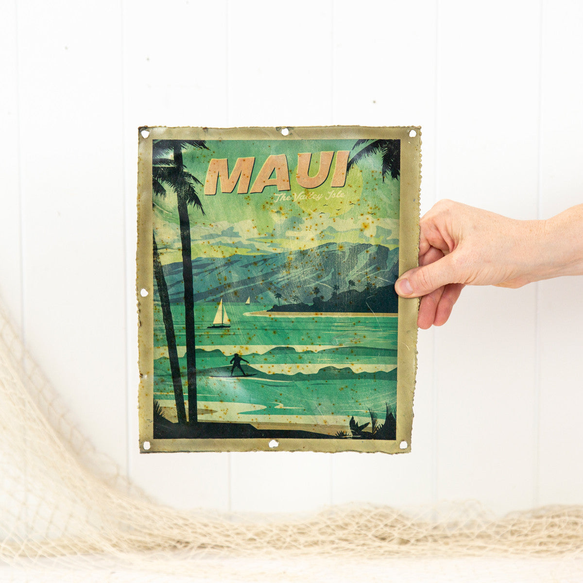 This wonderful retro wall piece has been created by printing an image onto metal.