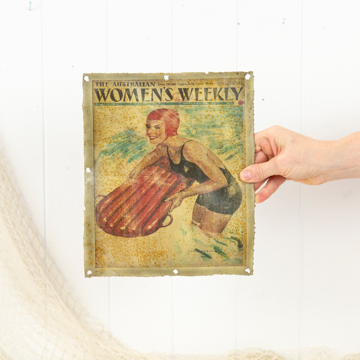 This wonderful retro wall piece has been created by printing an image onto metal.