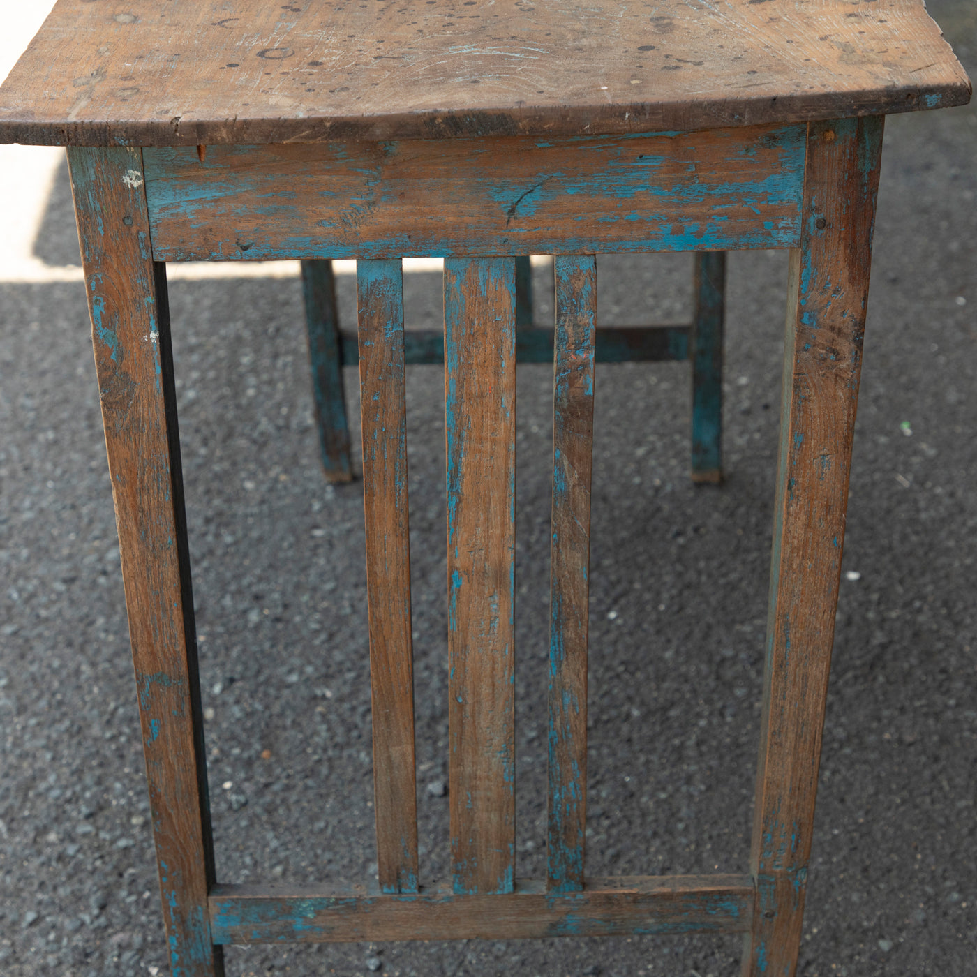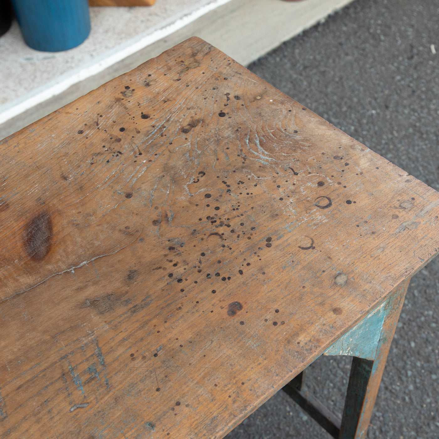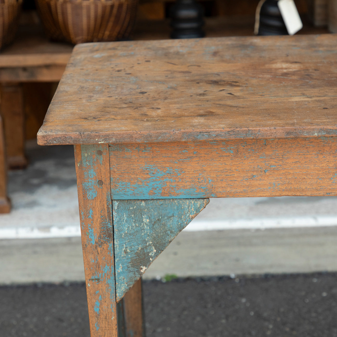 Just the right size for a small desk or entry way table. It has so much character, with a chippy blue finish.