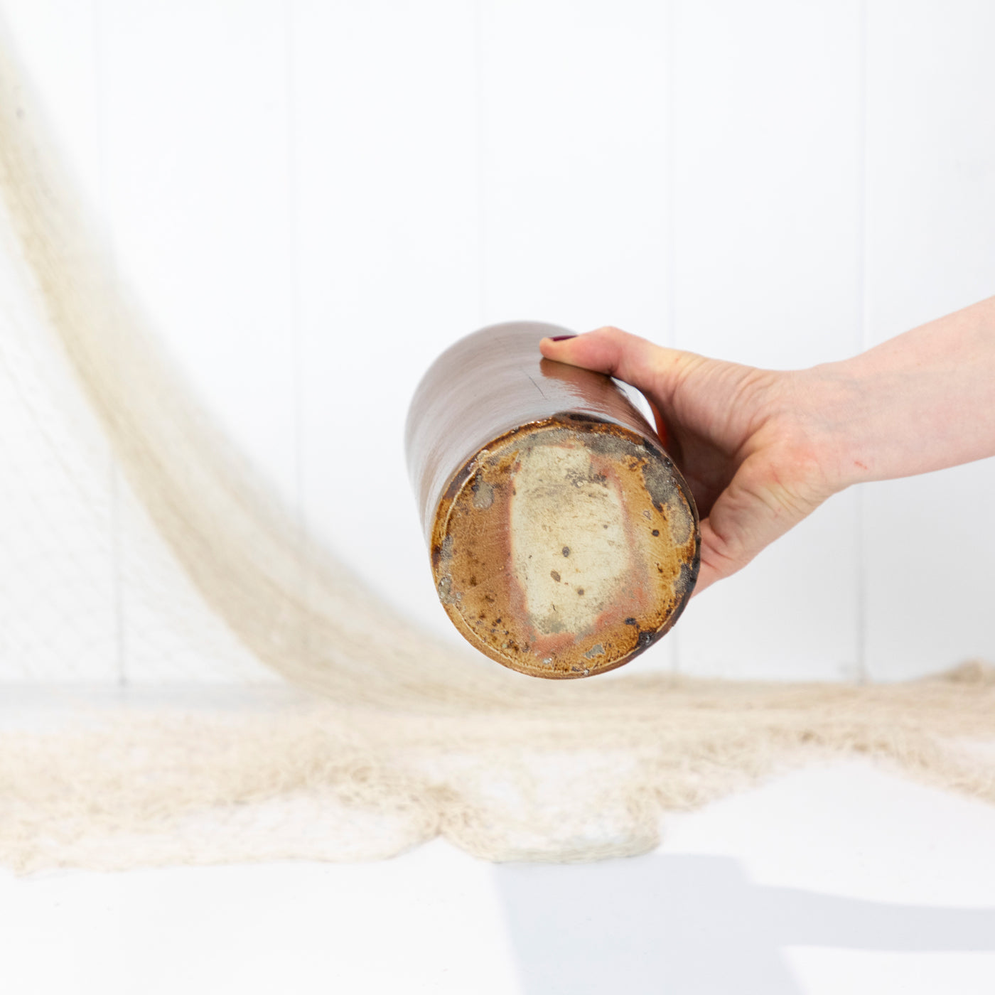 A beautiful bottle for styling, it has a wonderful, speckled glaze and is stamped Stephens London.