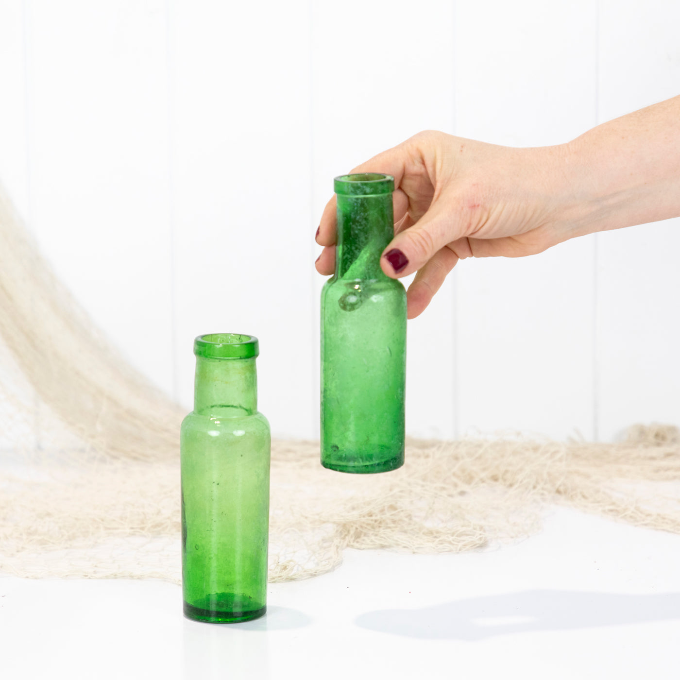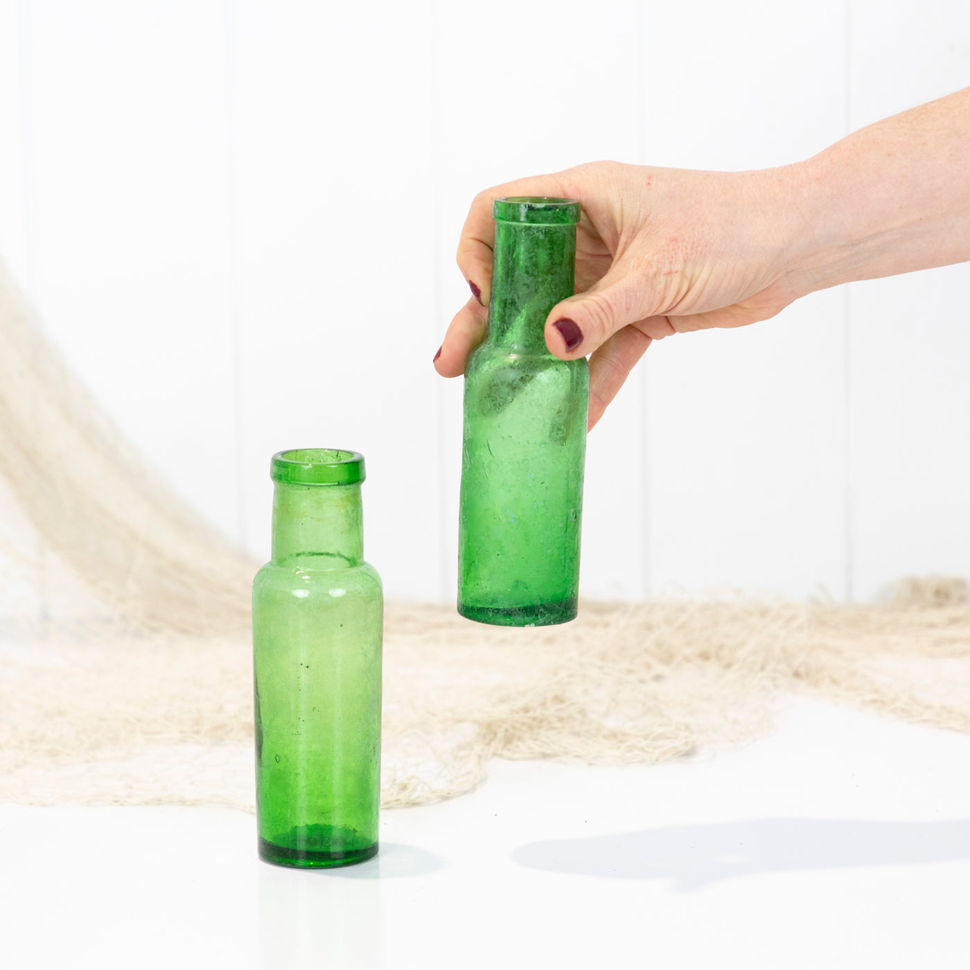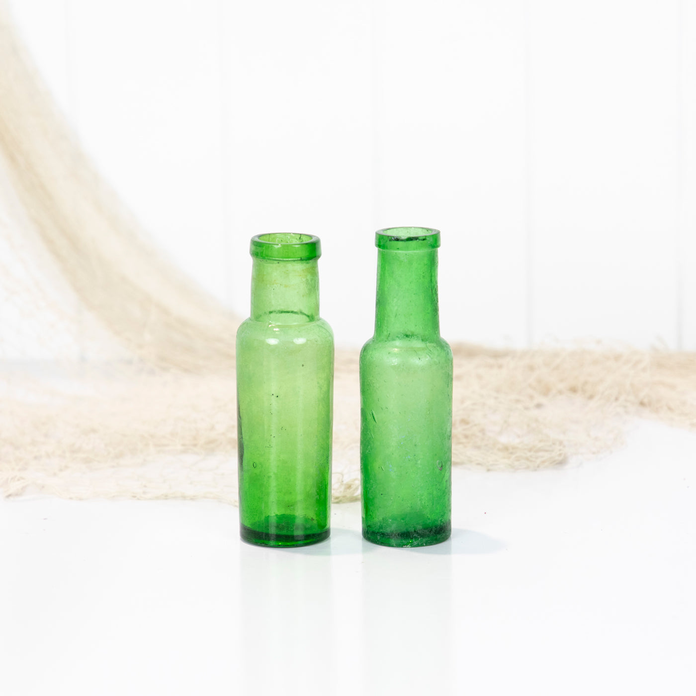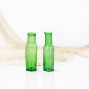 This pair old bottles are a vibrant green colour.