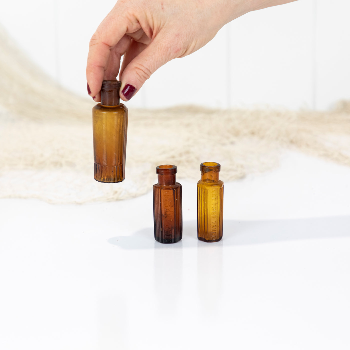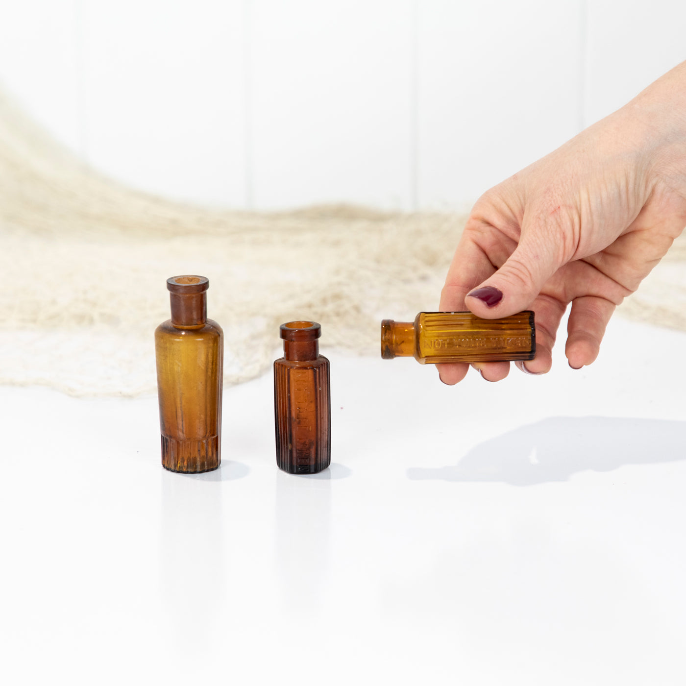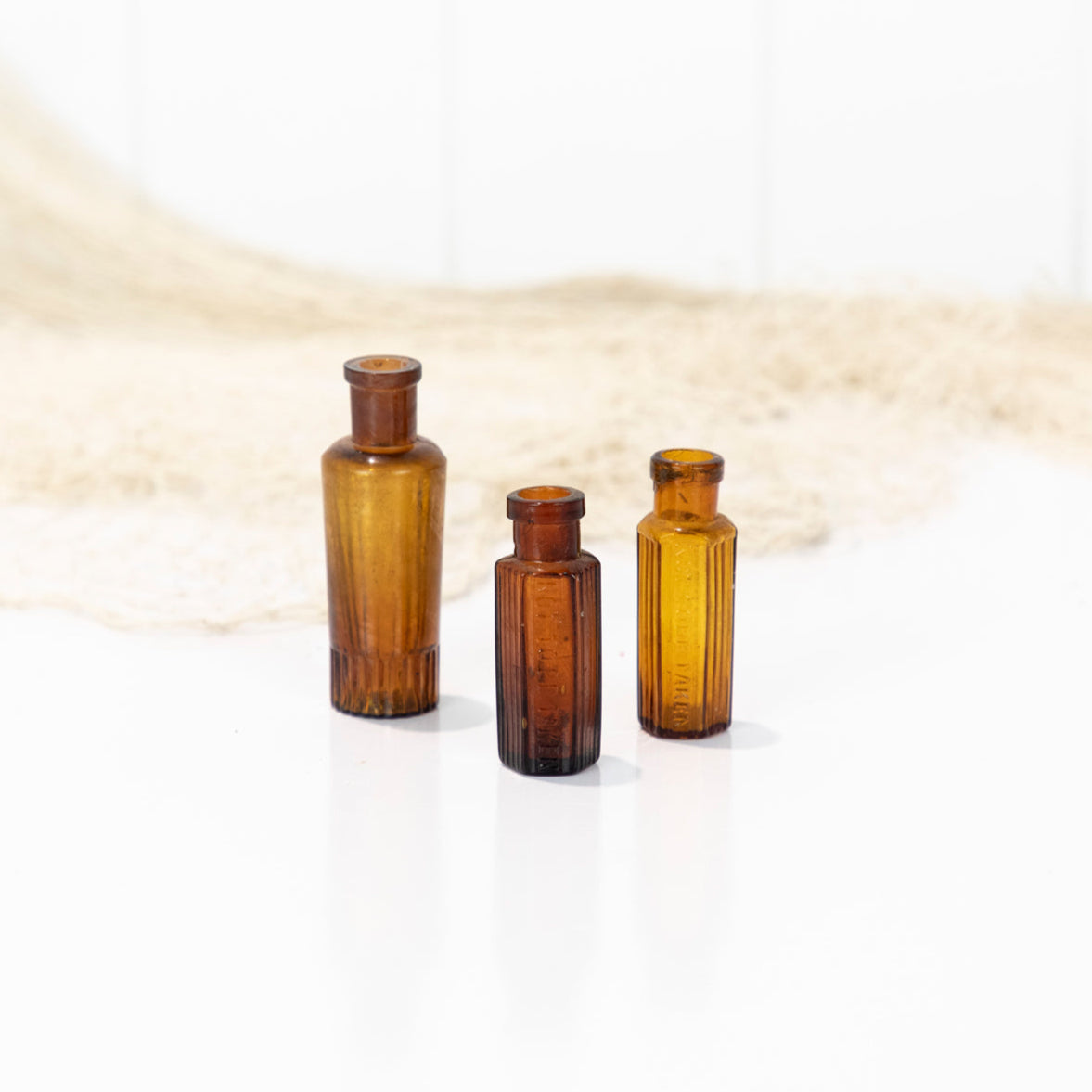 This trio of tiny amber poison bottles is sold as a set.