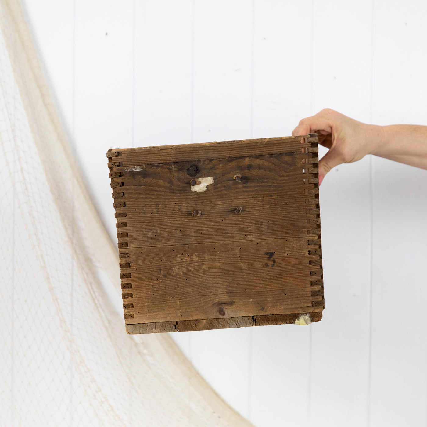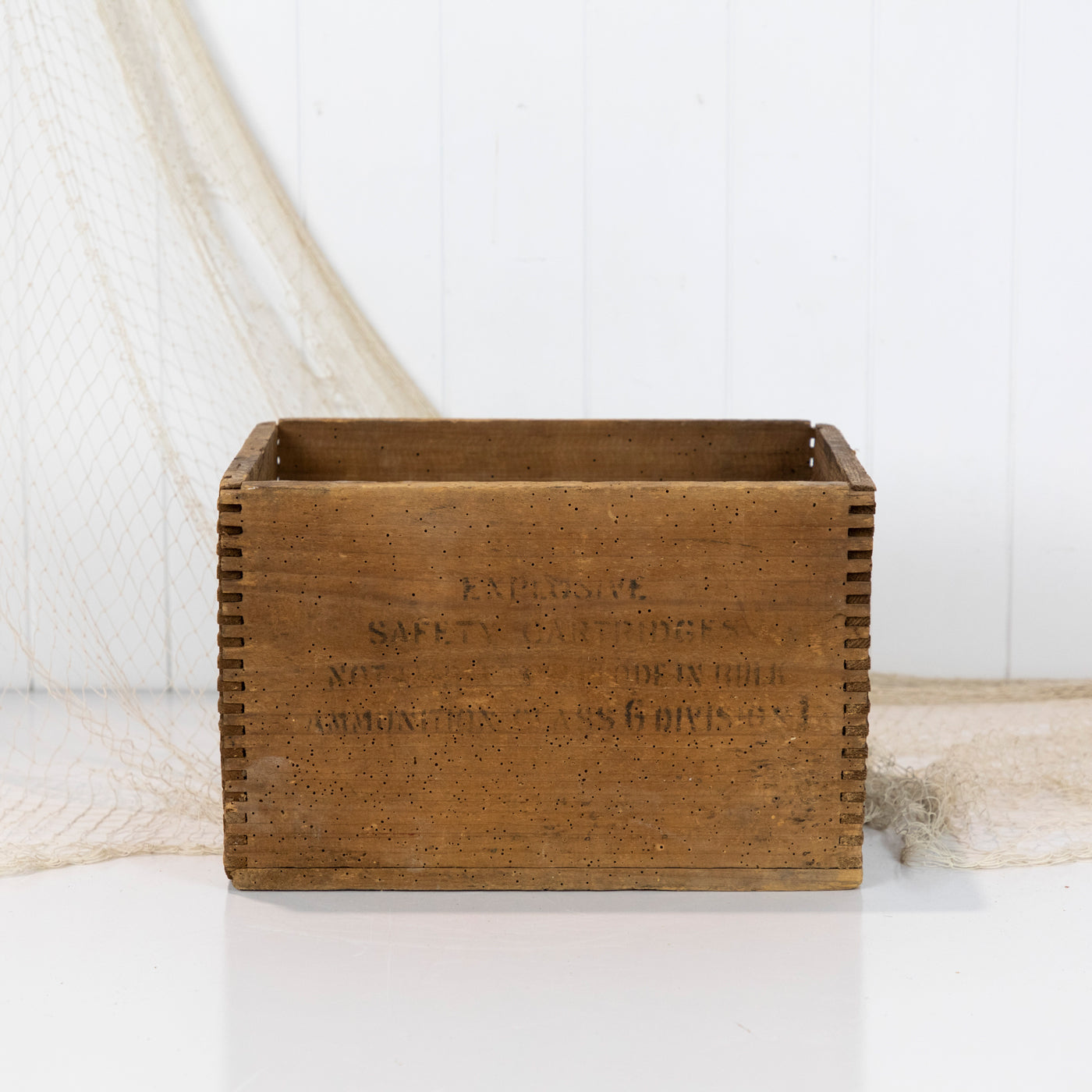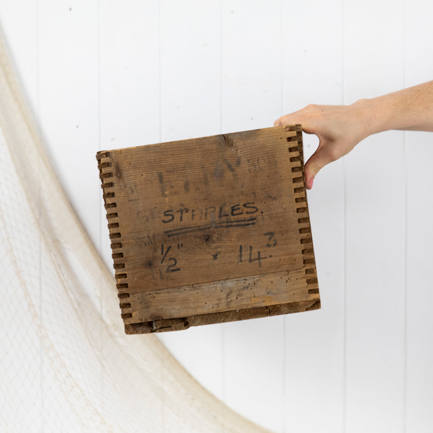 The stamps on the side have faded a little. It also appears to have been repurposed to store staples at one point!