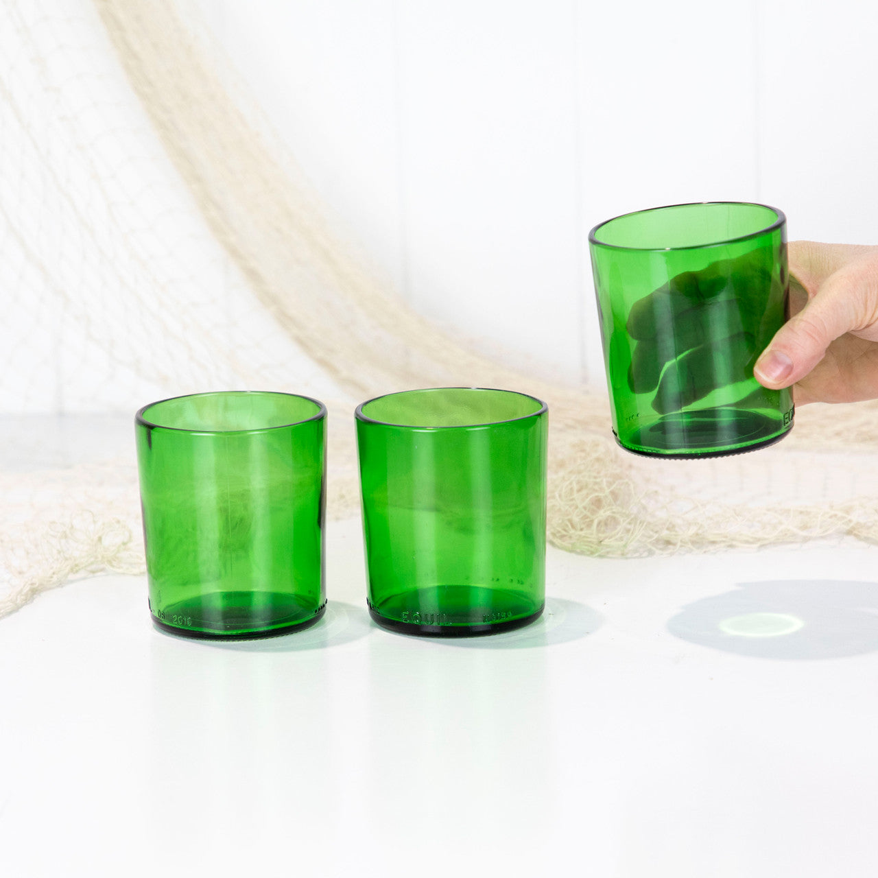 These fabulous green glasses have been made with recycled bottles by the Bali Street Mums.  These mothers used to beg on the streets of Kuta, Bali with their children and now have learnt a new trade making these fabulous glasses.
