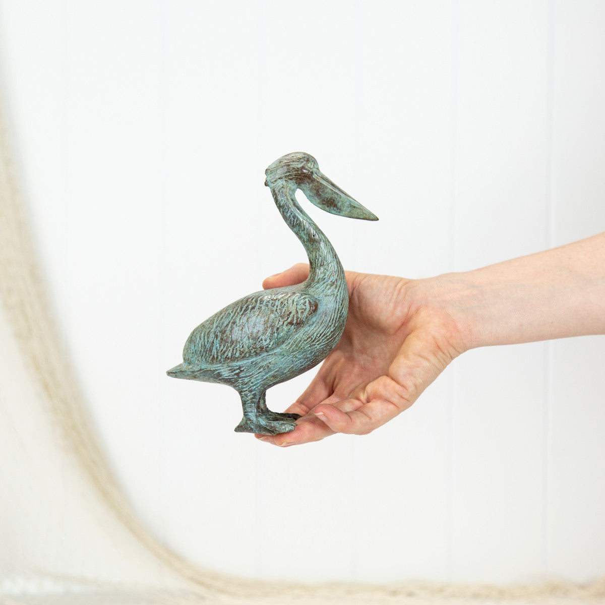 We have had this gorgeous pelican custom designed just for us. Made from brass it has been aged to bring on this gorgeous green patina.