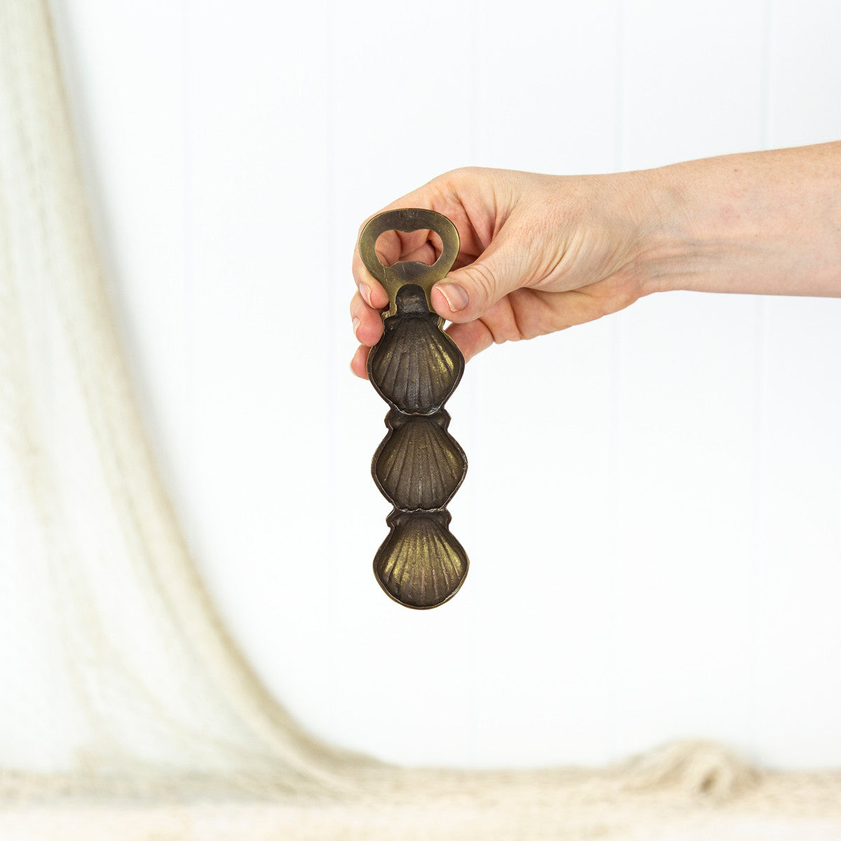 This sweet scallop shell brass bottle opener is perfect for the bar cart or serving tray.