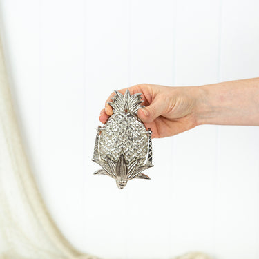 These little pineapple door knockers are made from brass that has been chromed to give a silver toned finish.
