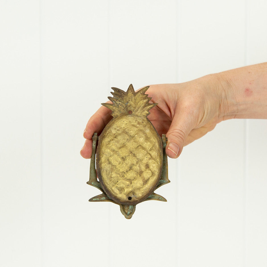 These little pineapple door knockers are made from brass that has had an aging process applied to accelerate the green patina.