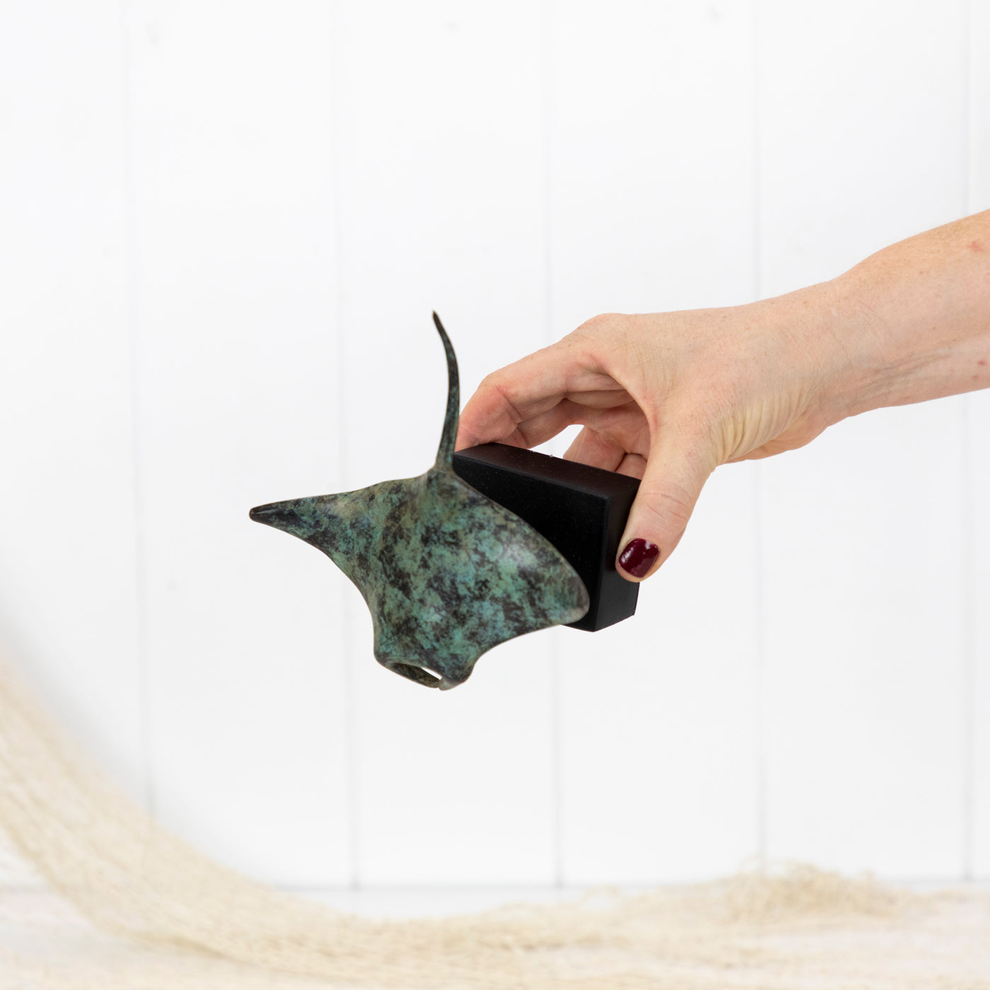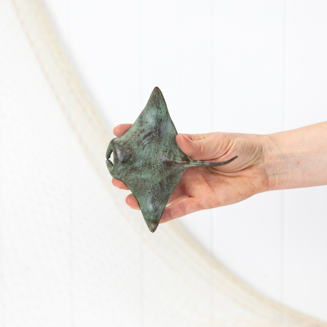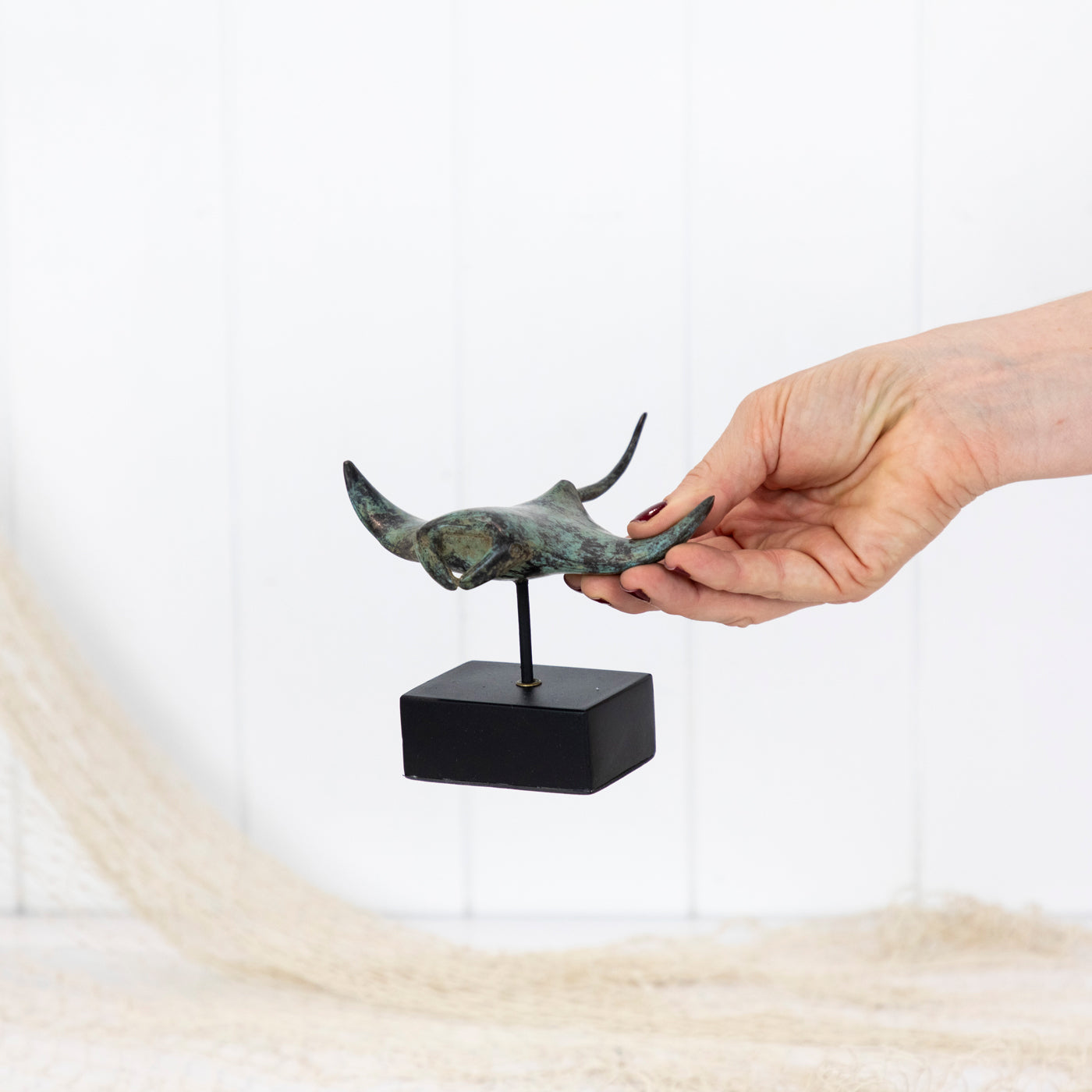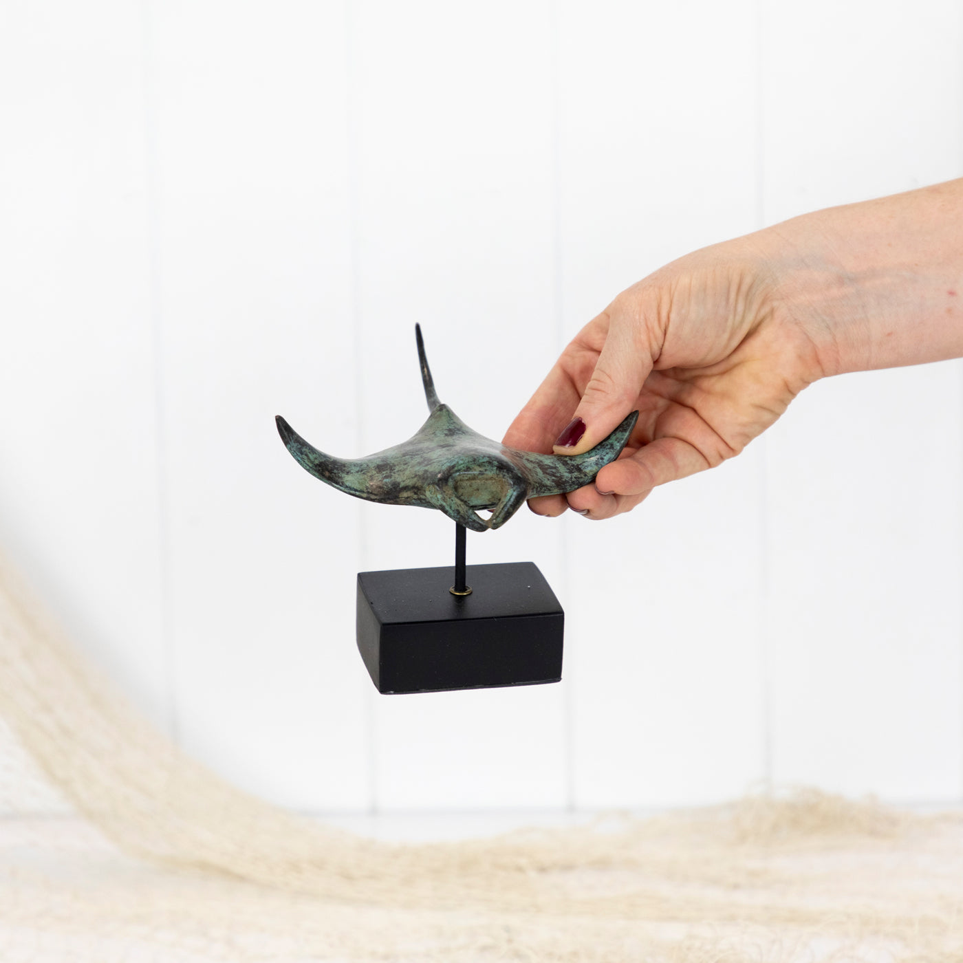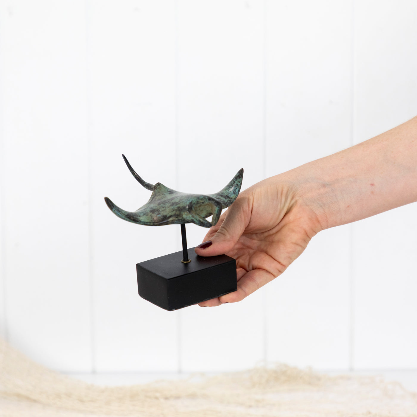 The brass has been aged to develop a lovely green patina. Fitted to a custom made stand they are perfect to display on the sideboard or coffee table.