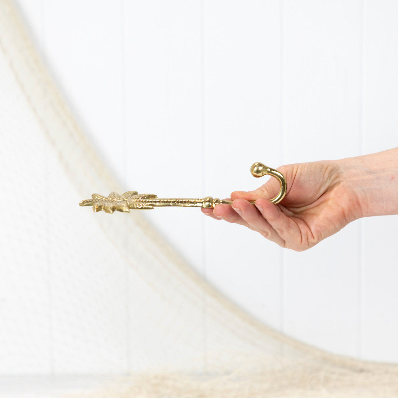 Palm tree brass hooks are perfect to display in the coastal style space.