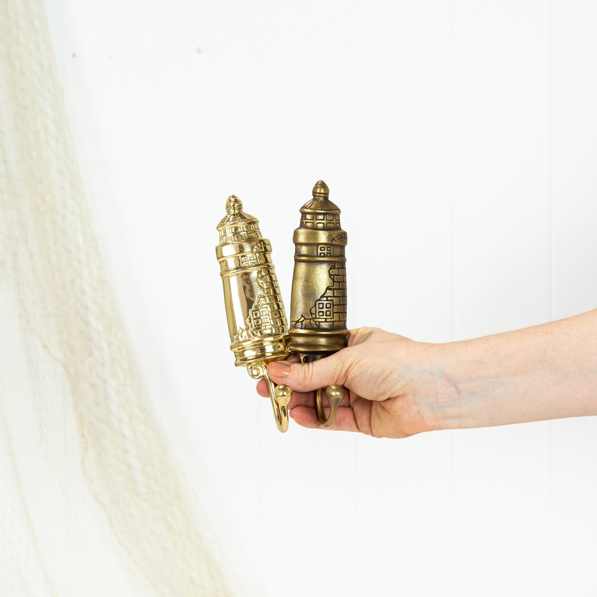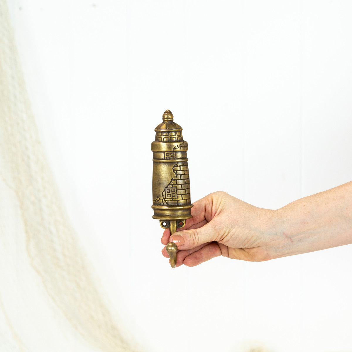 This sweet brass lighthouse hook has been designed exclusively for Coastal Vintage.