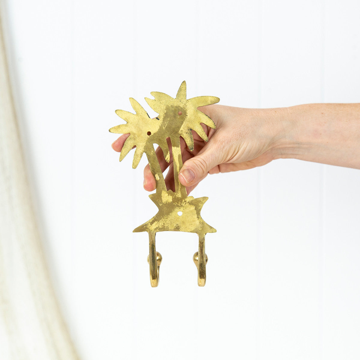 This hook is made from shiny brass and has two palm trees, and two hooks.