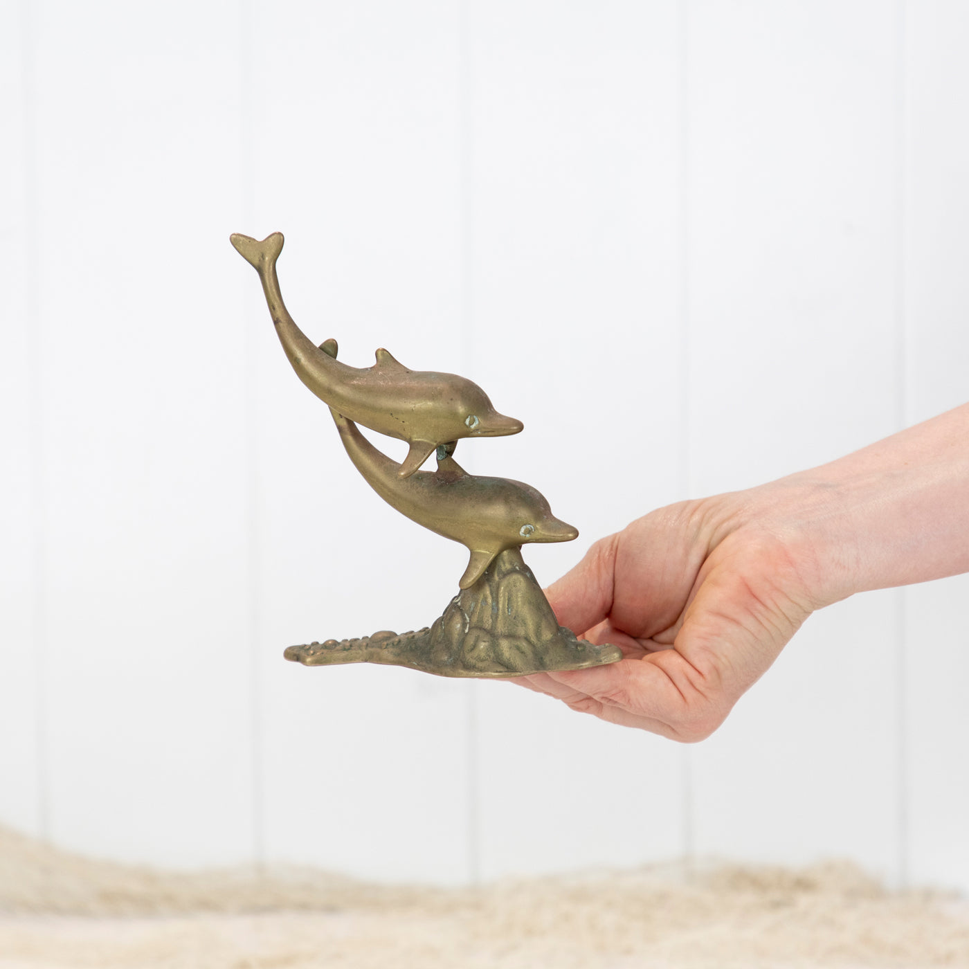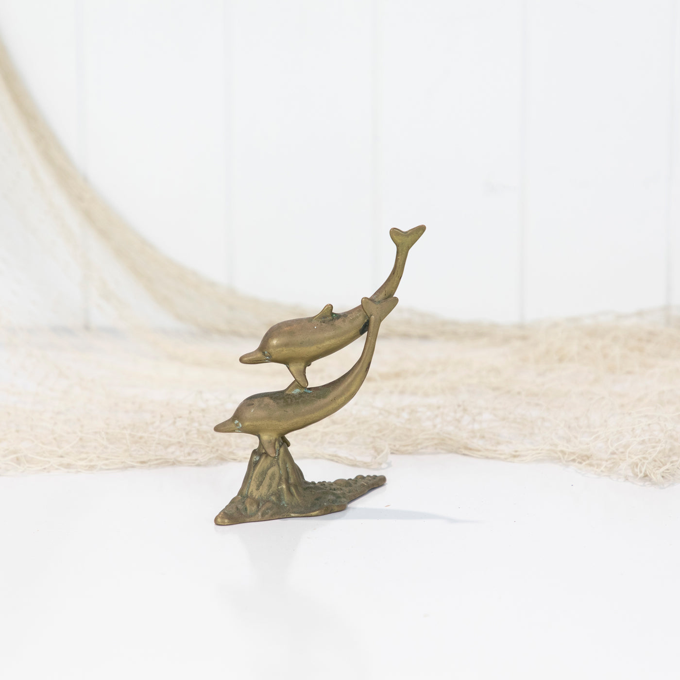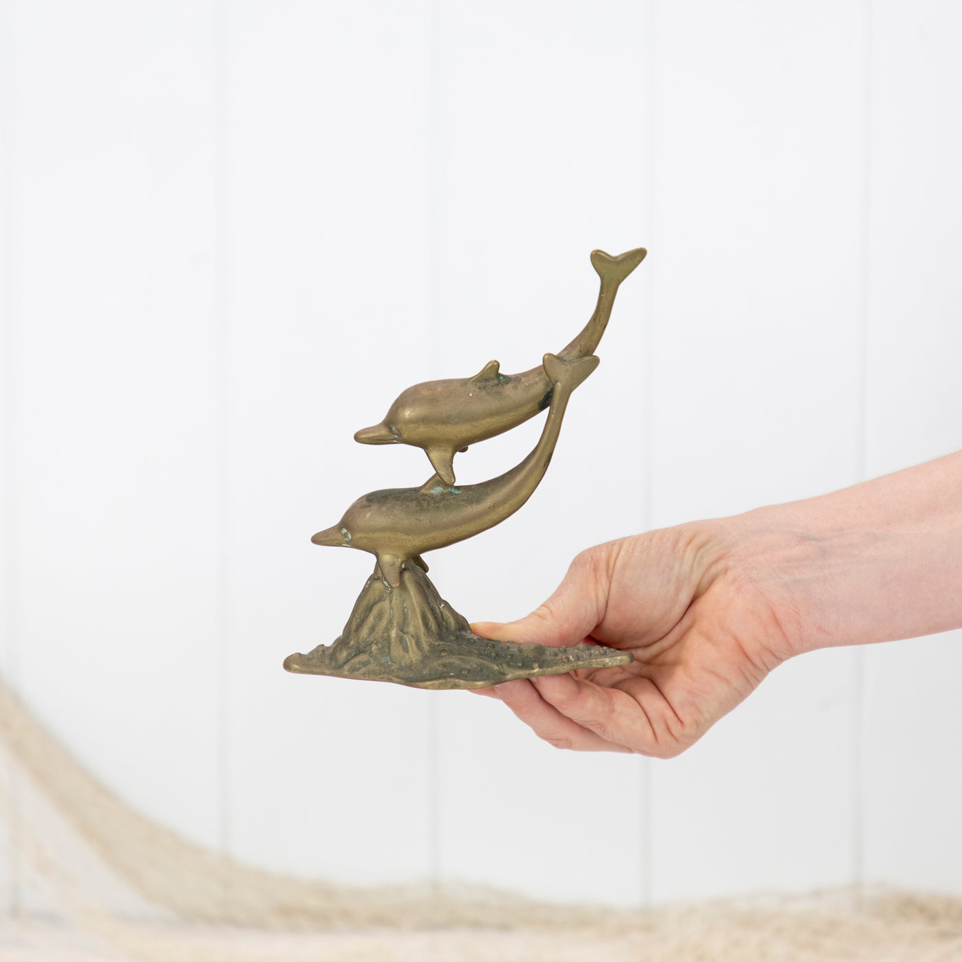 This sweet little vintage statue is of a pair of dolphins jumps the waves.