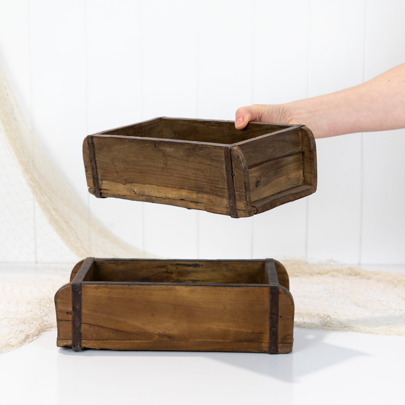 These gorgeous wooden boxes are actually a brick moulds and were used to shape clay or mud into blocks!