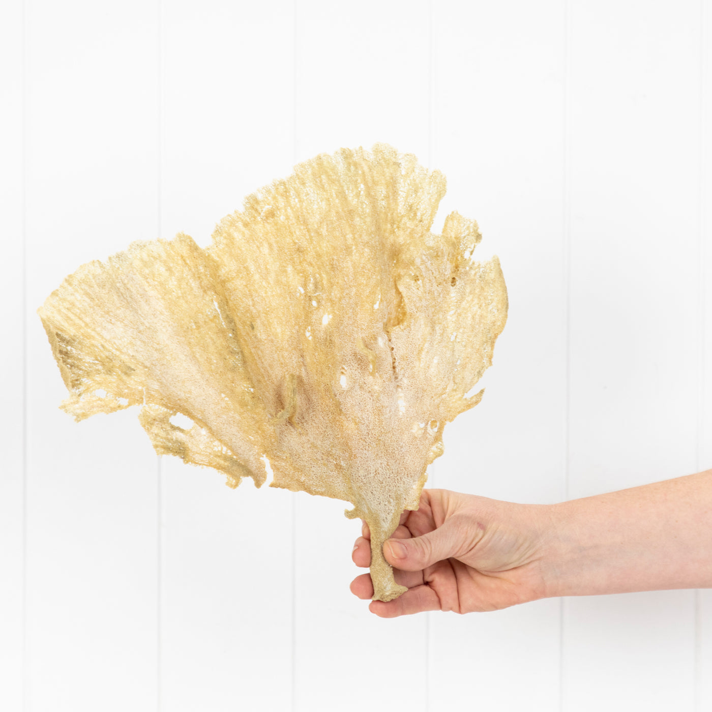 The fan-like shape of this piece would look wonderful framed or displayed in a vase or bowl.