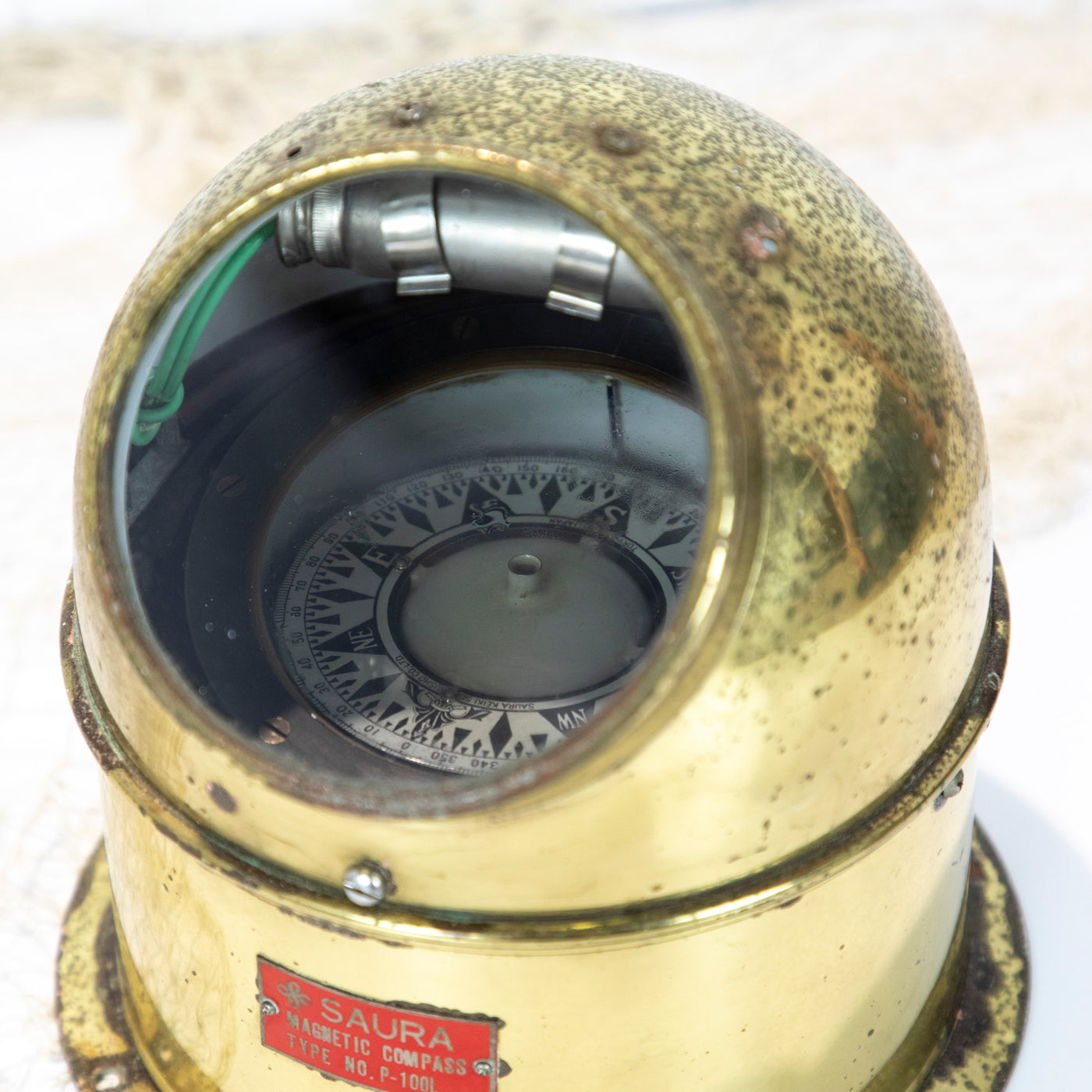 Still fitted inside a binnacle, it also has the remains of a light fitting for navigating at night!