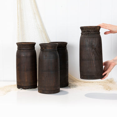 Stained a dark brown, each one is slightly different sue to the shape and detail of the timbers used.