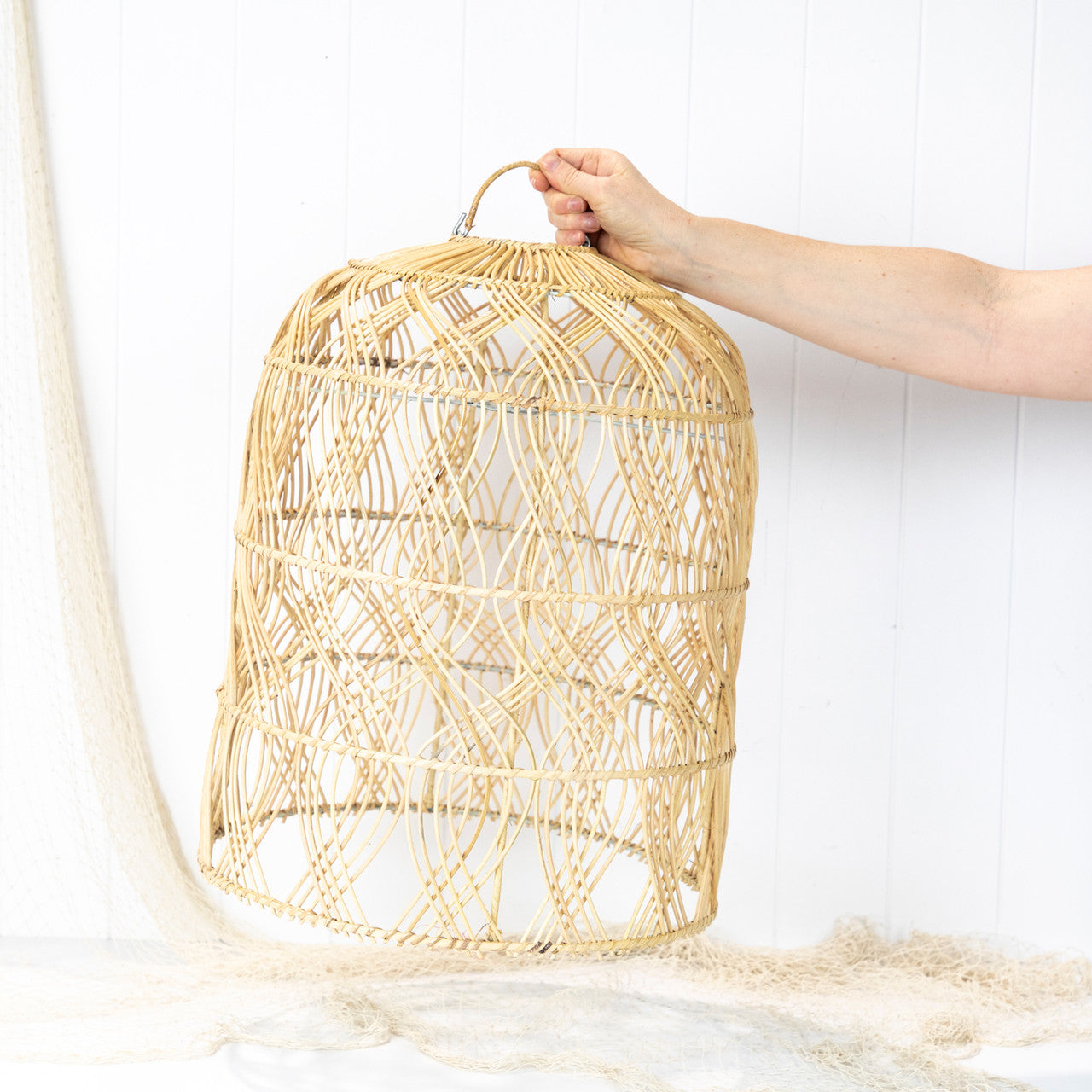 The natural cane has been woven in a wave pattern. They look wonderful over an island bench, or along a hallway.