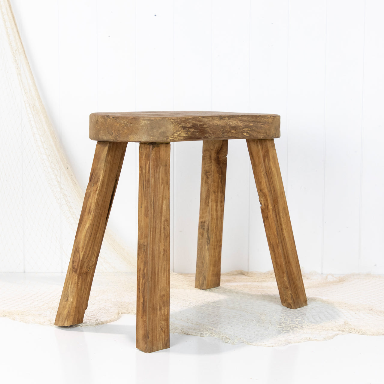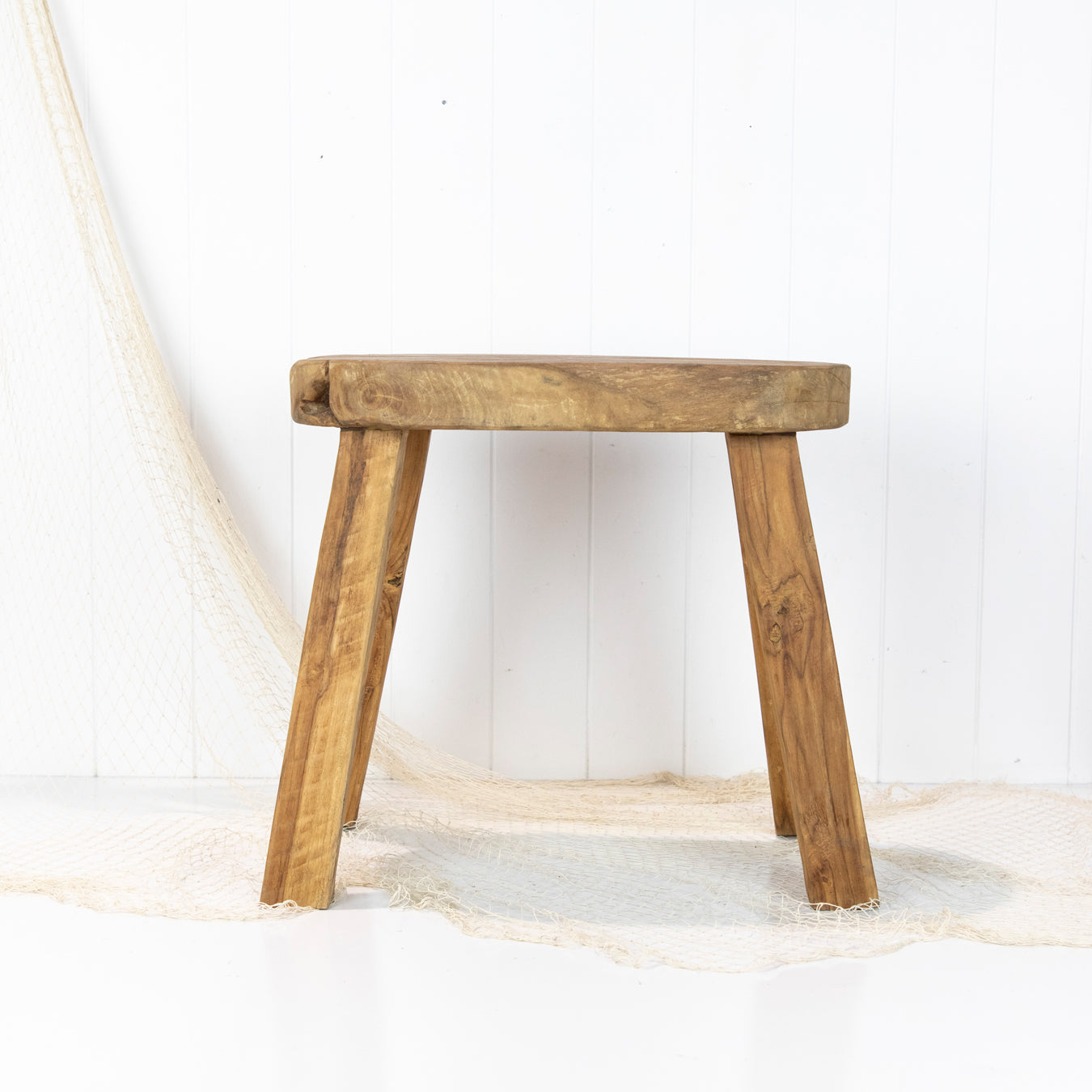 These rustic little wooden stools are from Indonesia and have been made with reclaimed timbers. The top is carved into an oval or coffee bean shape.