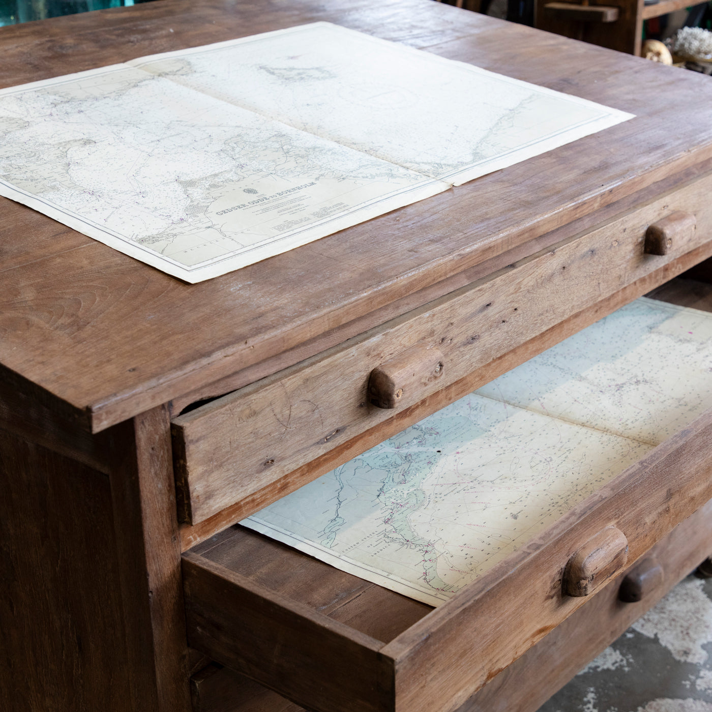 With large drawers, it is a perfect storing artworks, charts, maps, or small collectibles such as shells.