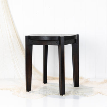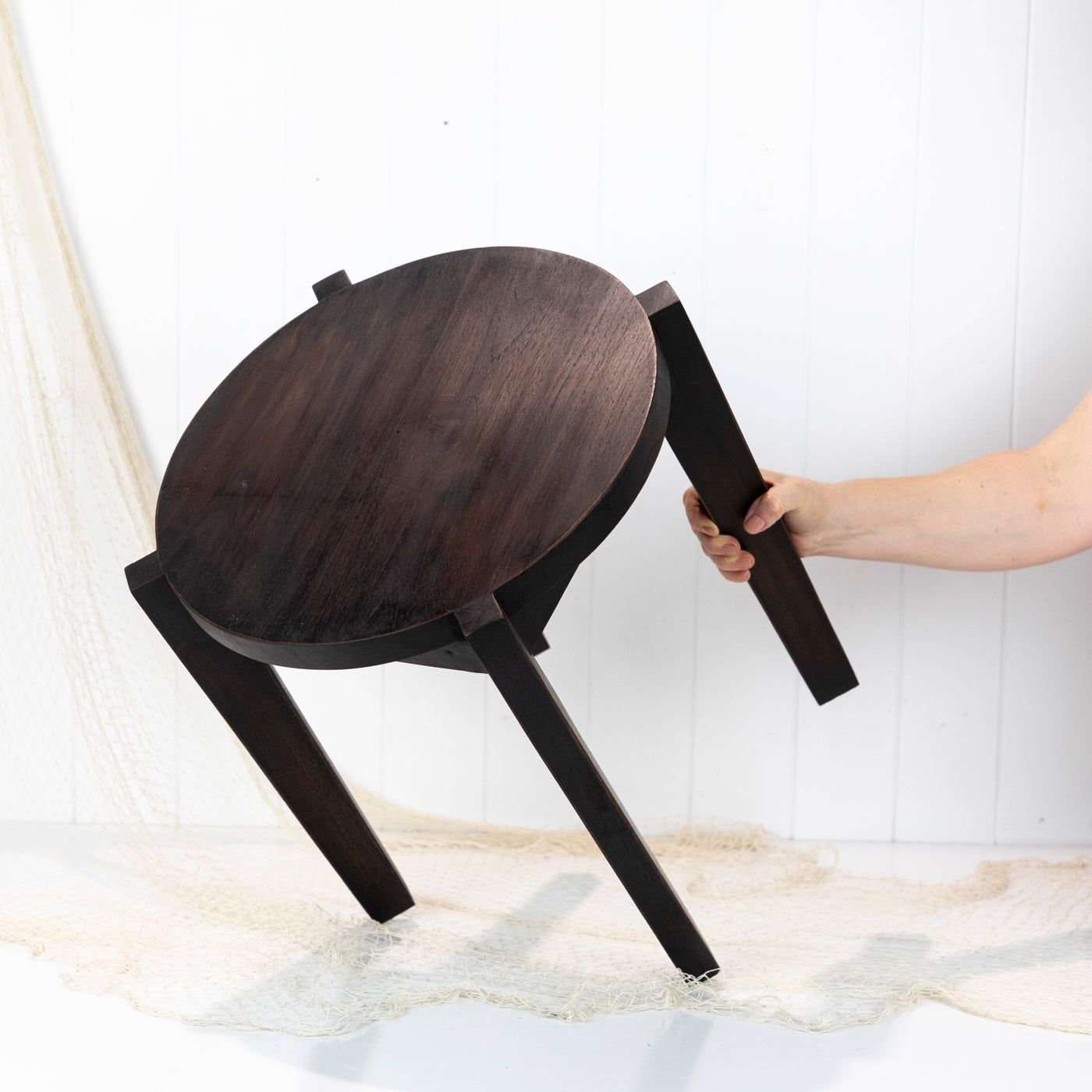 Made new the timber has been stained a dark brown/black but the grain can still be seen.