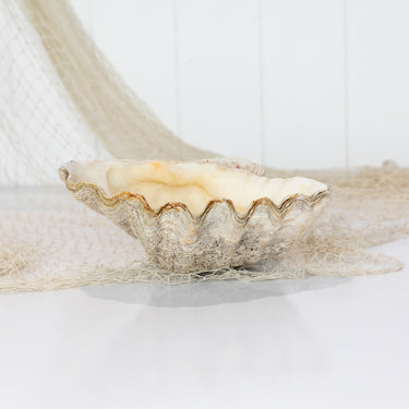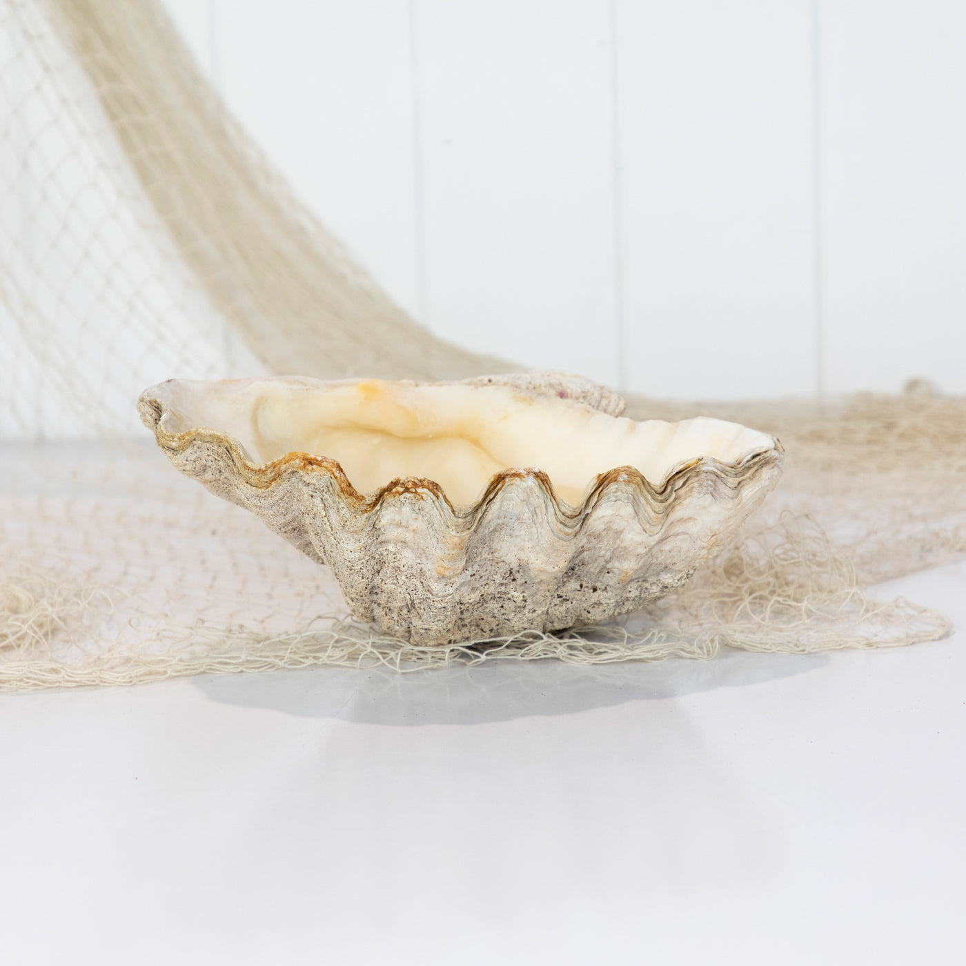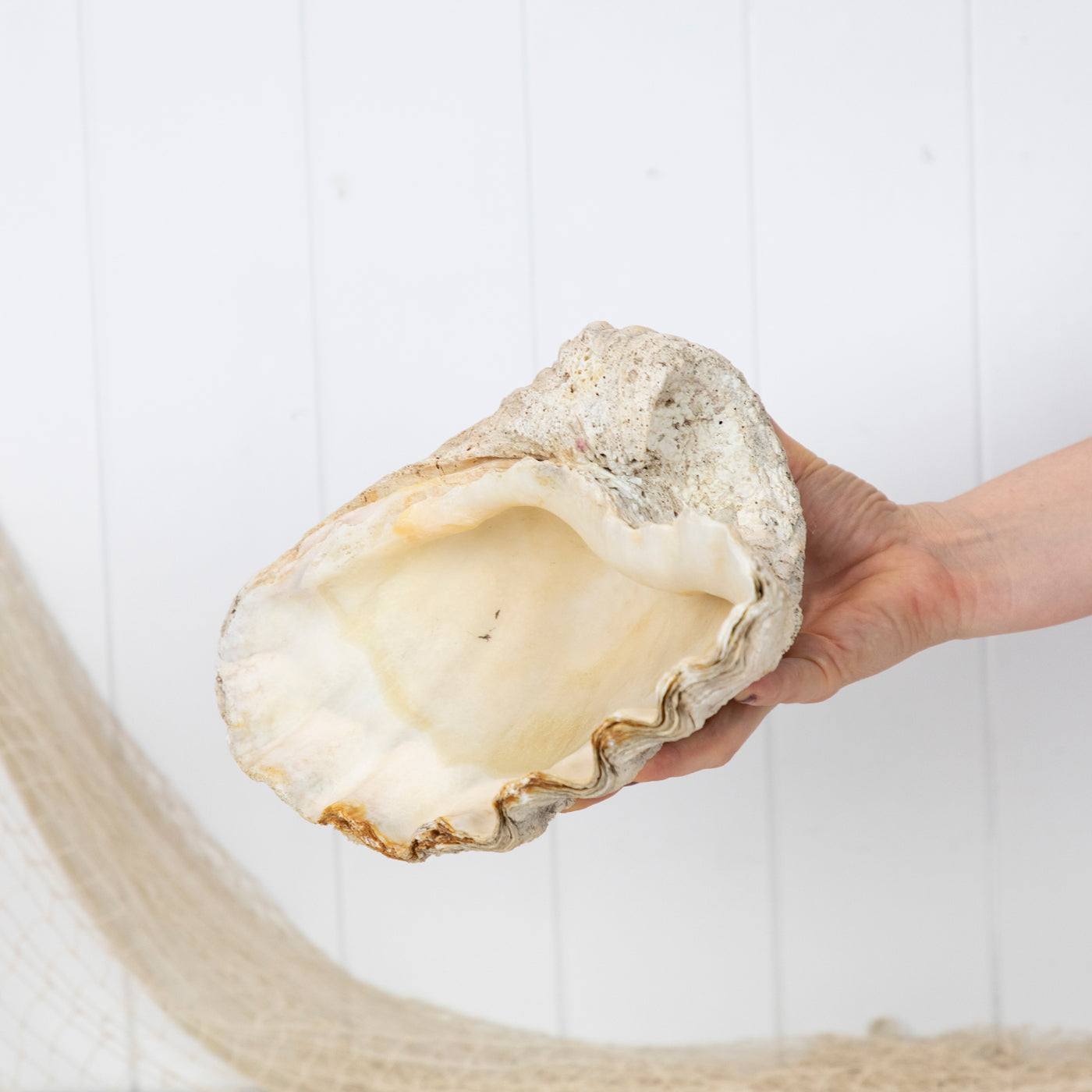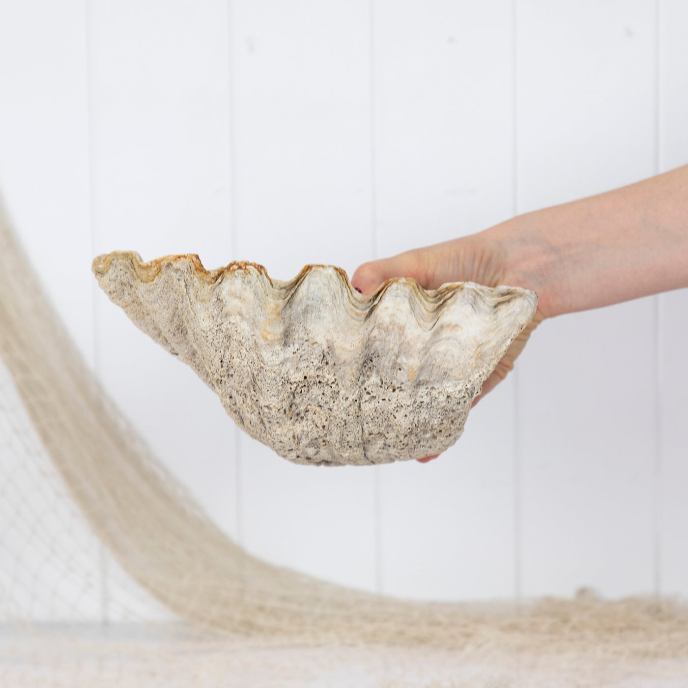 Faded with age it is pitted and grey on the outside with a creamy coloured inside.