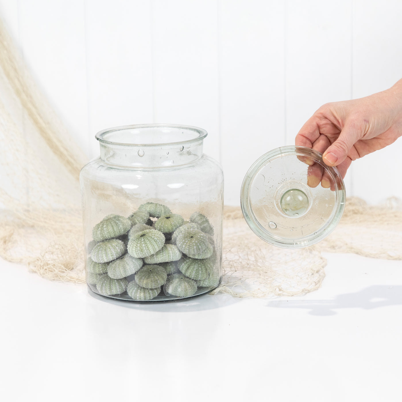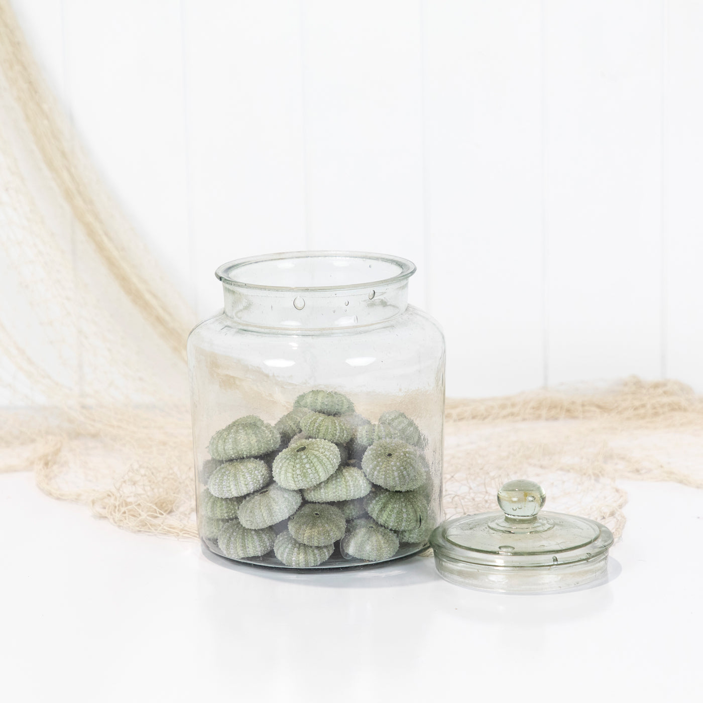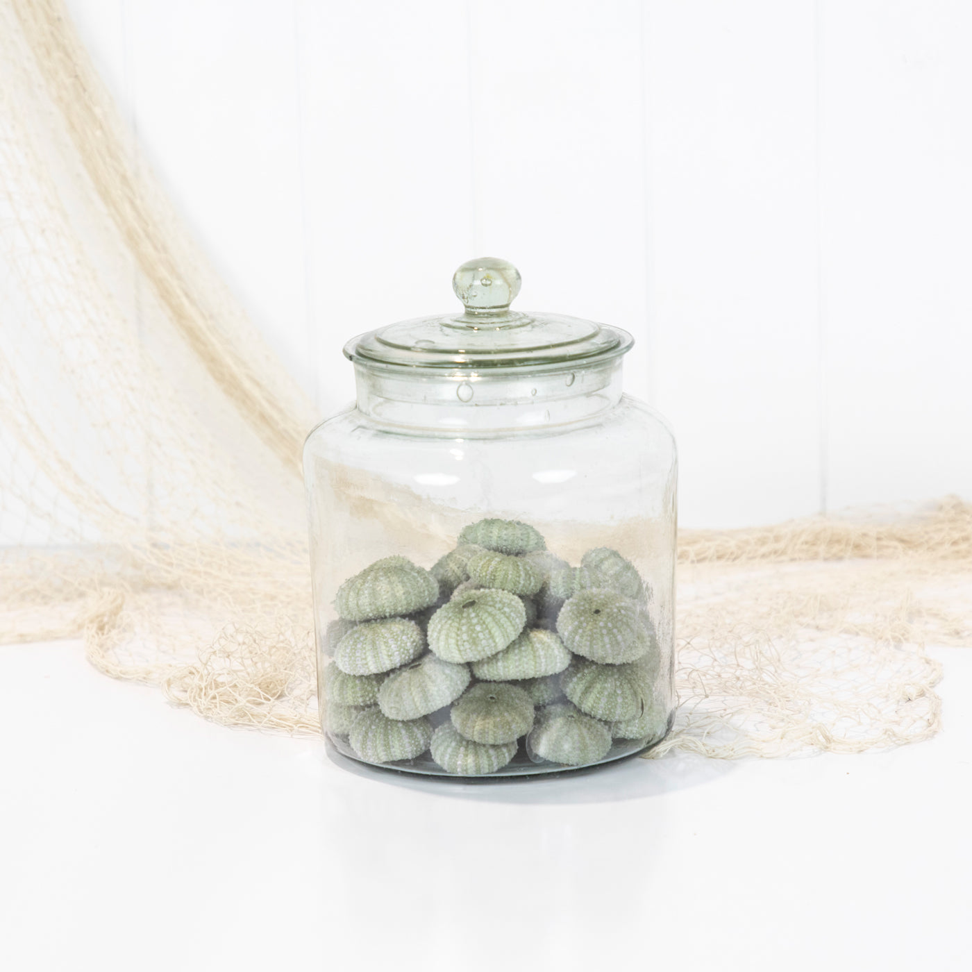 The glass jar allows every detail of the urchins to be seen whilst keeping them safe and dust free. It would look wonderful on a coffee table or sideboard.