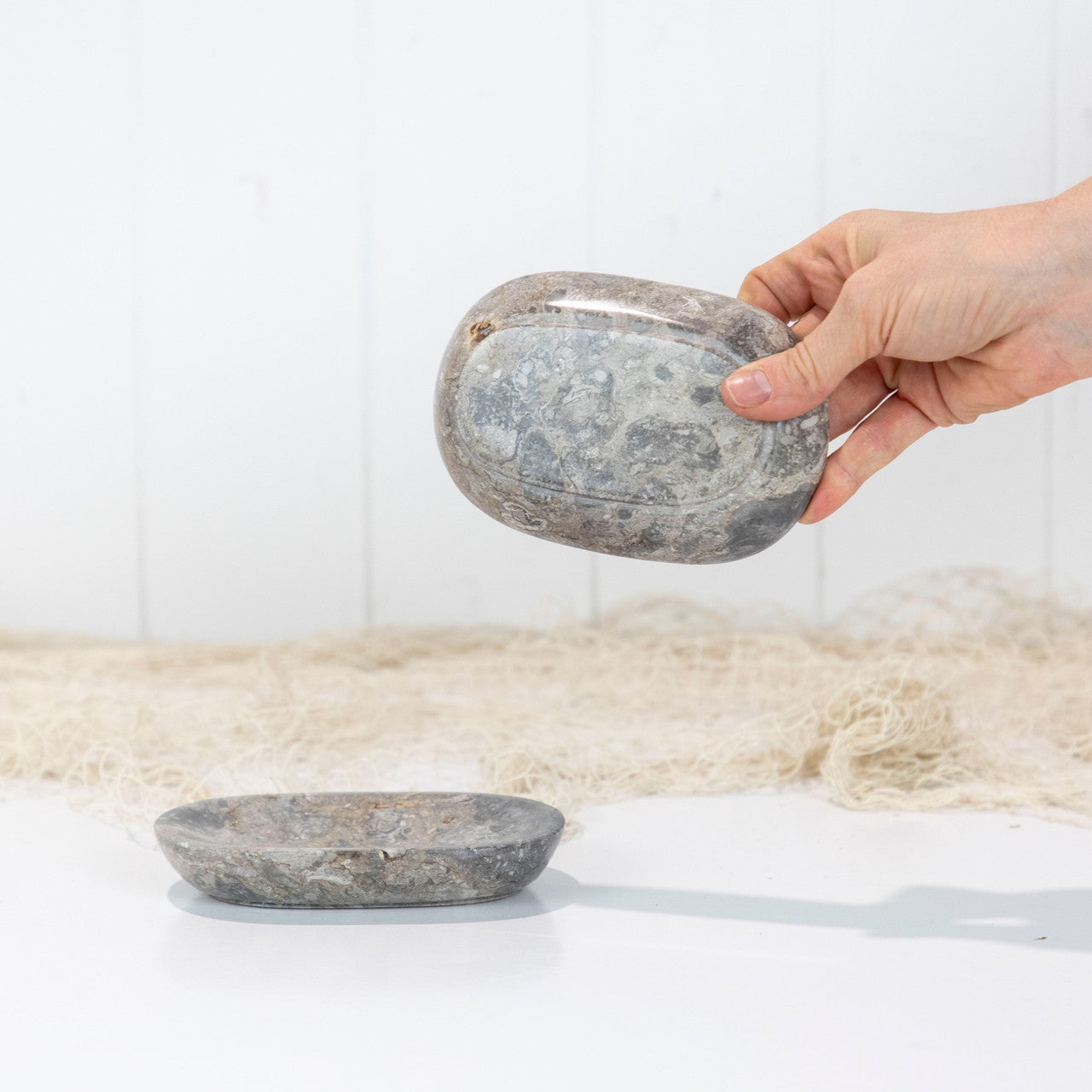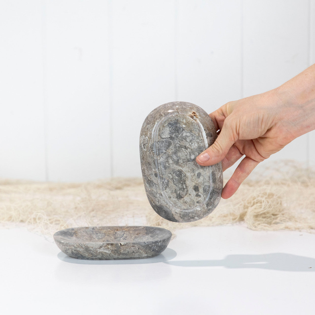 Beautiful pieces of stone have been carved and polished into a shape of a dish.
