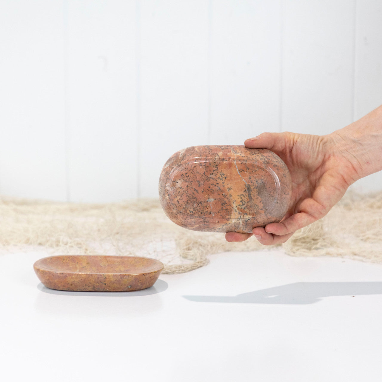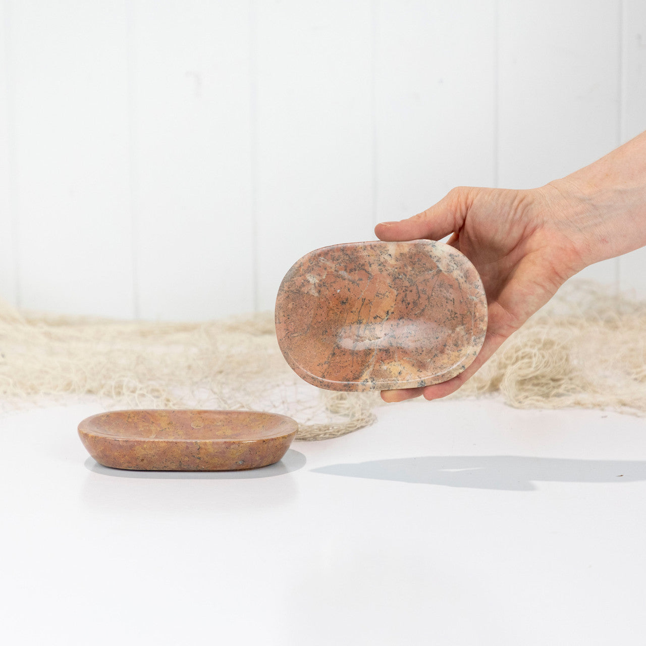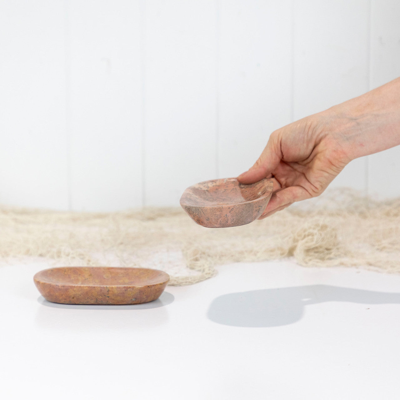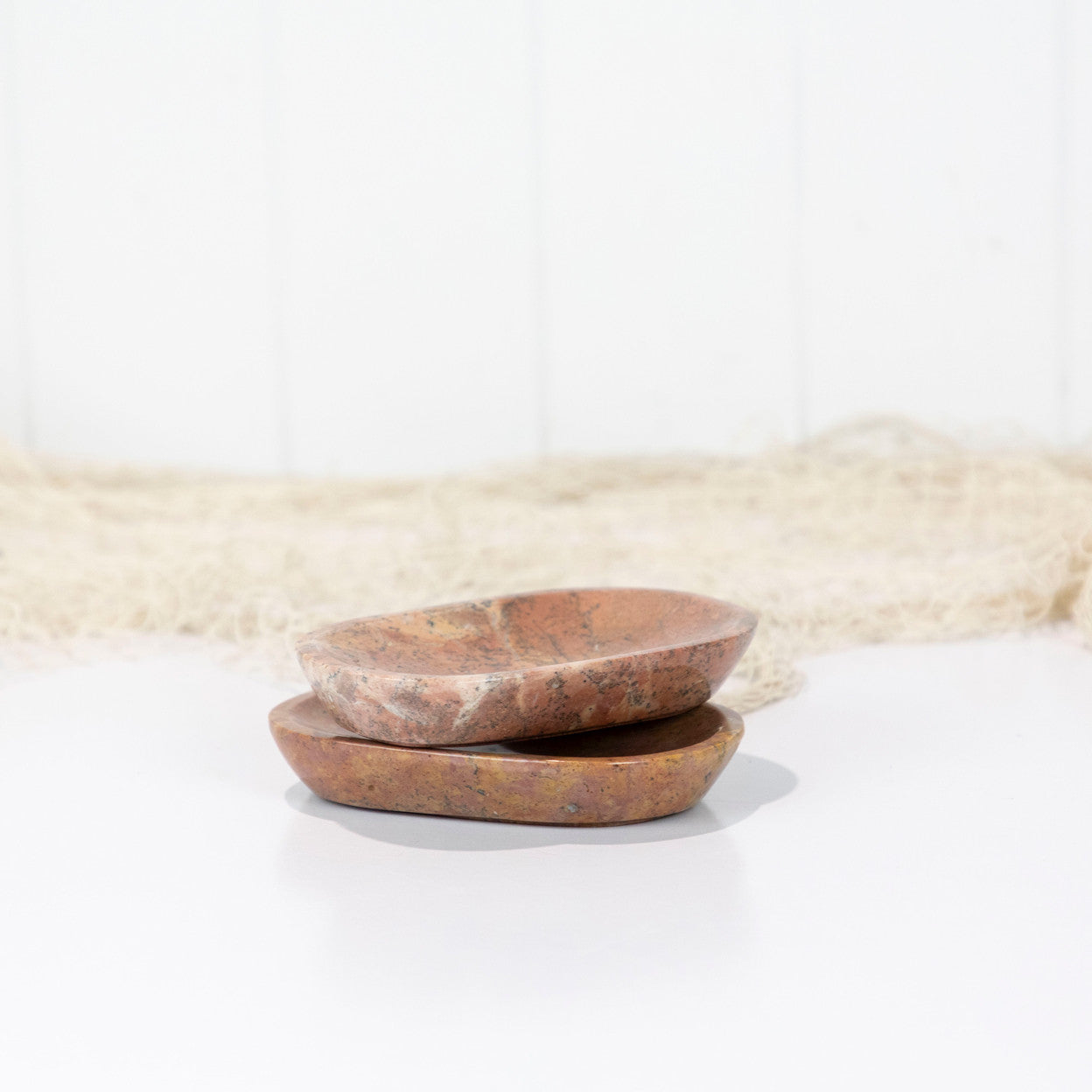 Beautiful pieces of stone have been carved and polished into a shape of a dish.