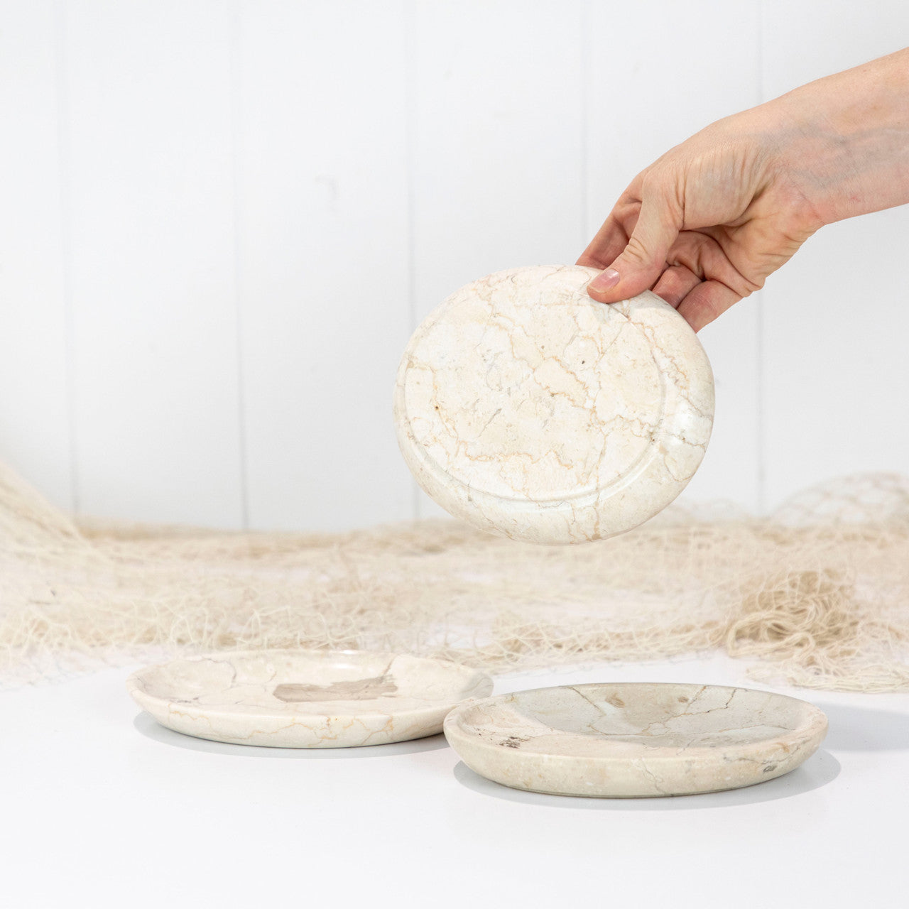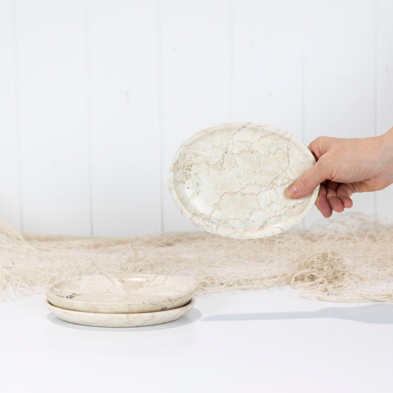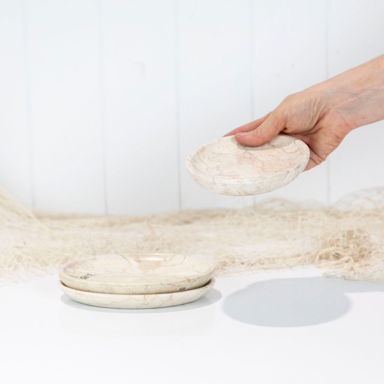 Beautiful pieces of stone have been carved and polished into a small plate.