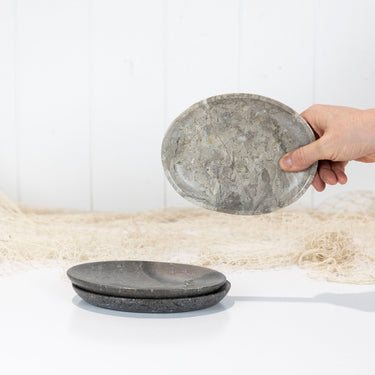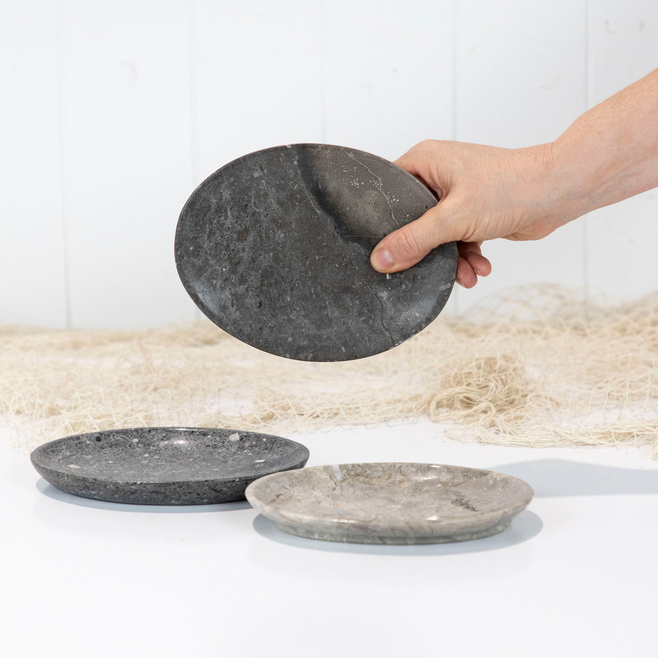 Beautiful pieces of stone have been carved and polished into a small plate.