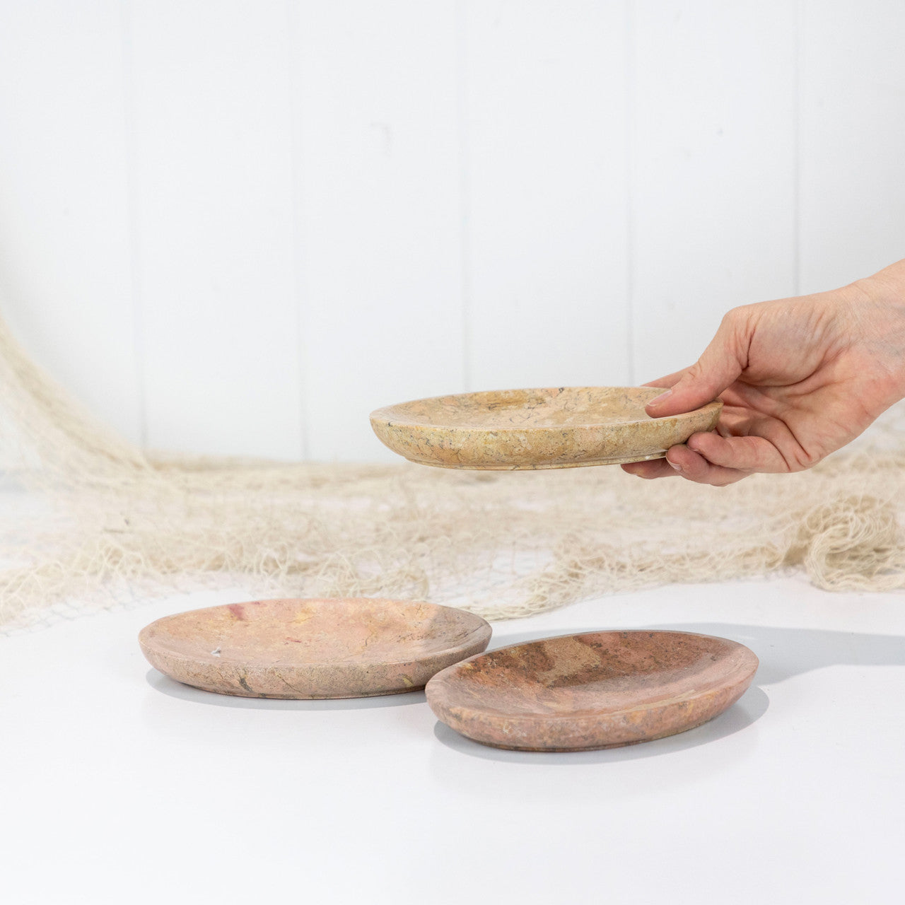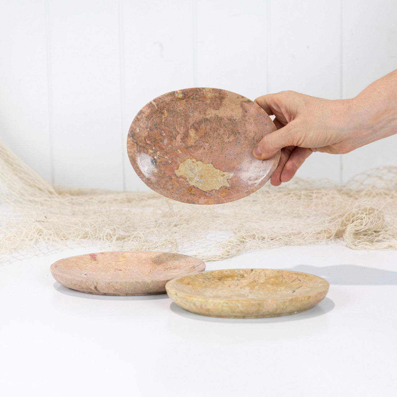 Beautiful pieces of stone have been carved and polished into a small plate.