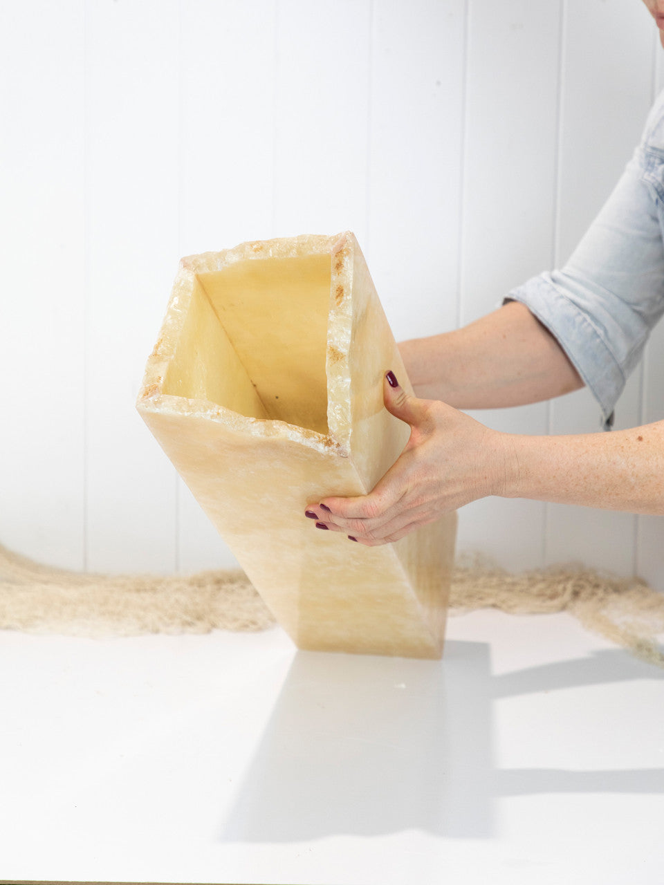 The bottom has a hole and notch cut to allow for wiring to be added. Or just add a battery powered lamp or candle.