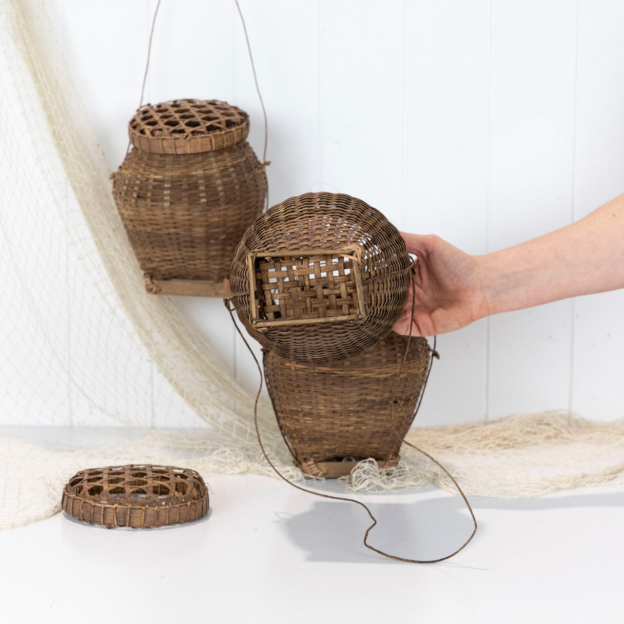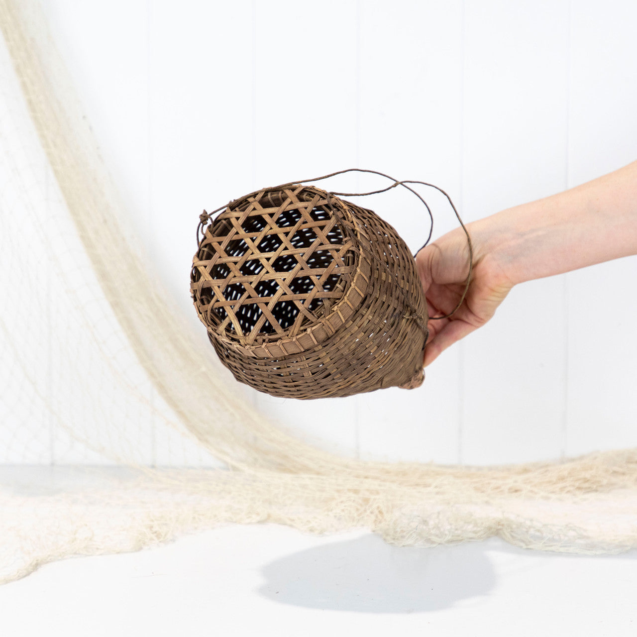 These Indonesian woven bags were used for carrying and storing bait for fishing.