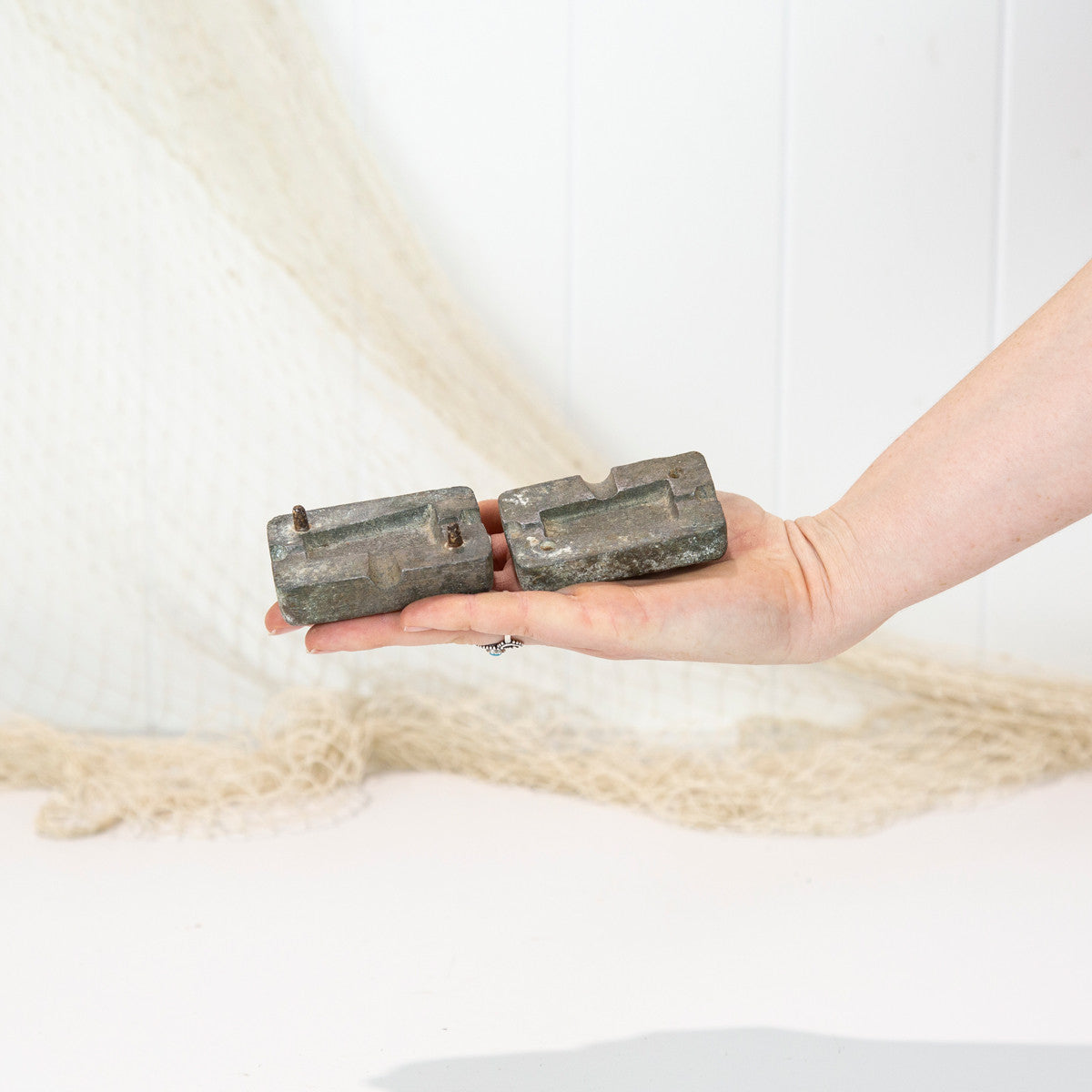 These old moulds are made from bronze, and were used to cast sinkers for fishing.