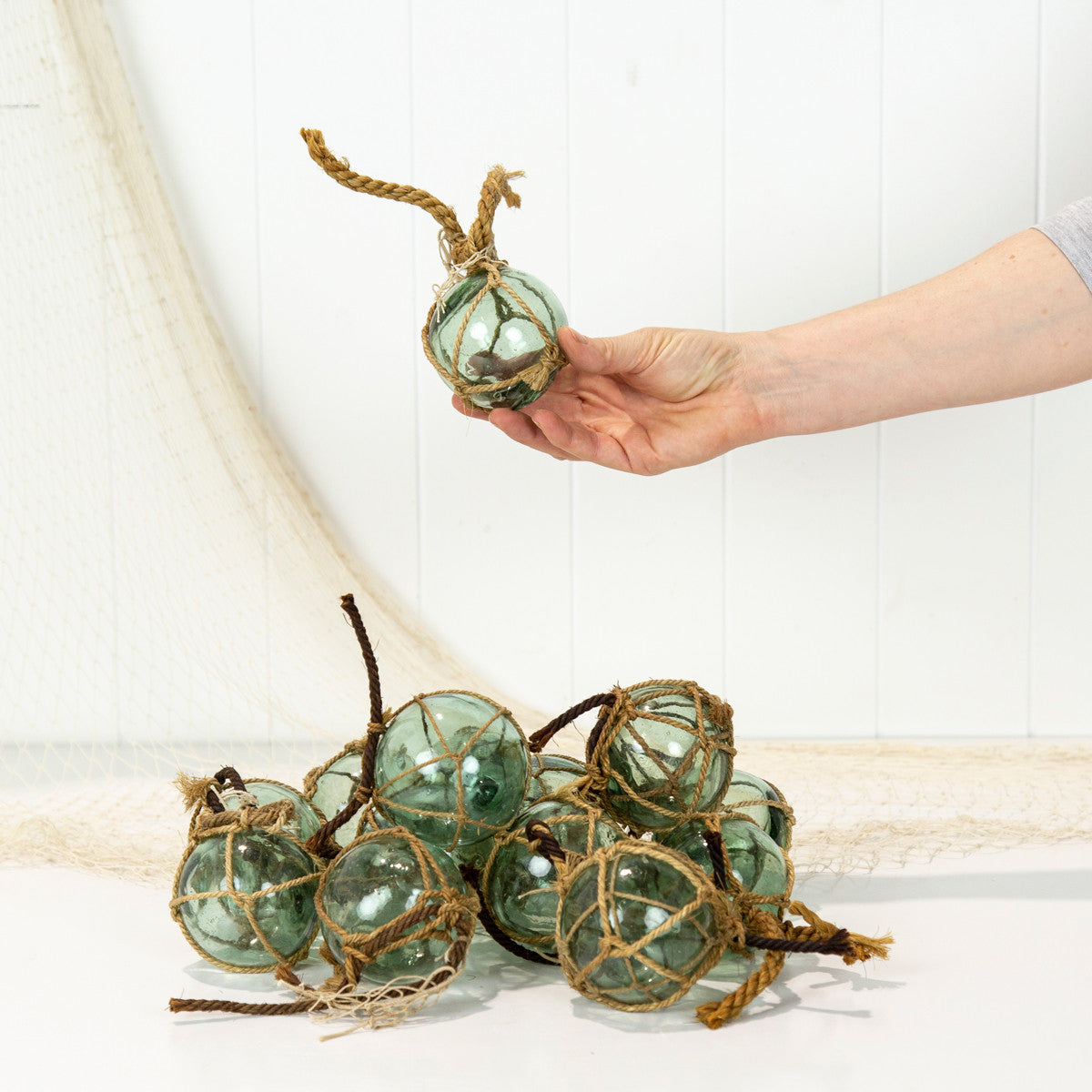 These 2.5 inch or tennis ball sized glass floats make great display pieces. This size of float is getting increasingly hard to source.