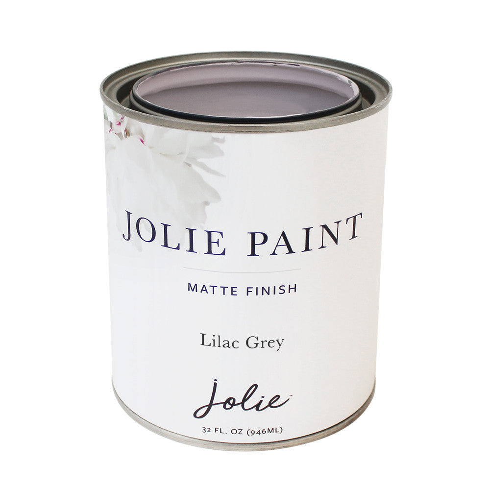Jolie Paint in LILAC GREY is a muted, sophisticated grey with icy purple undertones. It works well as a beautiful neutral. Lilac Grey can be paired with Jolie Paint in Linen for a very current color combo.